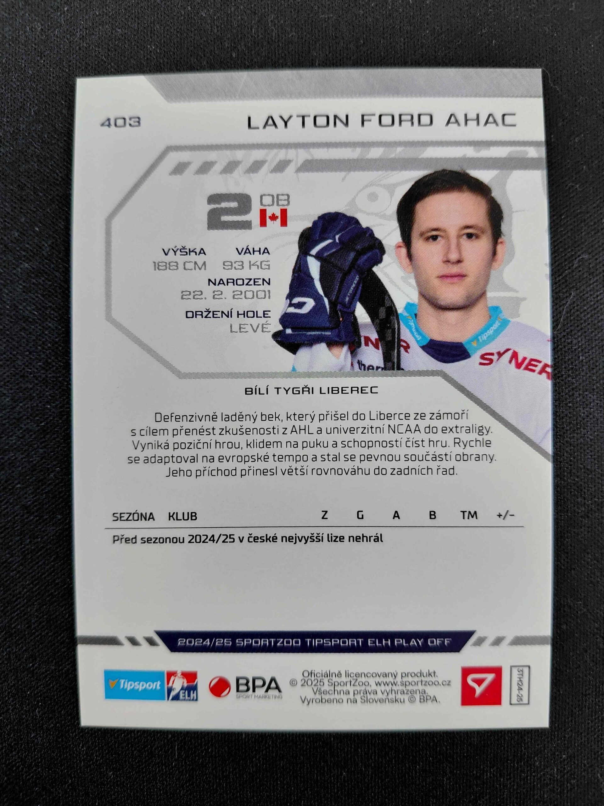 Sběratelská karta 2024/2025 Sportzoo Play Off Puck Marks 403 Layton Ford Ahac Paralel