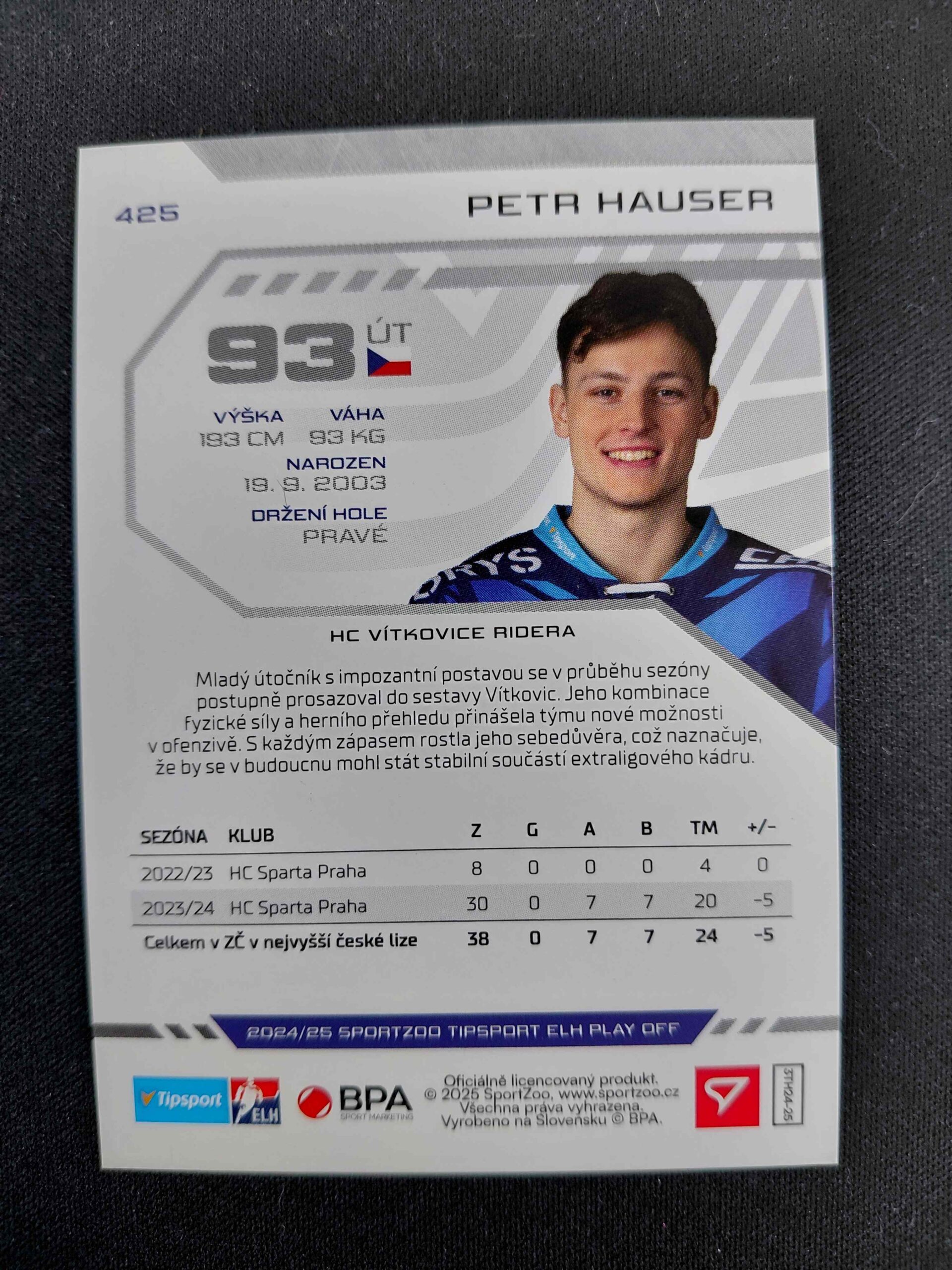 Sběratelská karta 2024/2025 Sportzoo Play Off Puck Marks 425 Petr Hauser Paralel