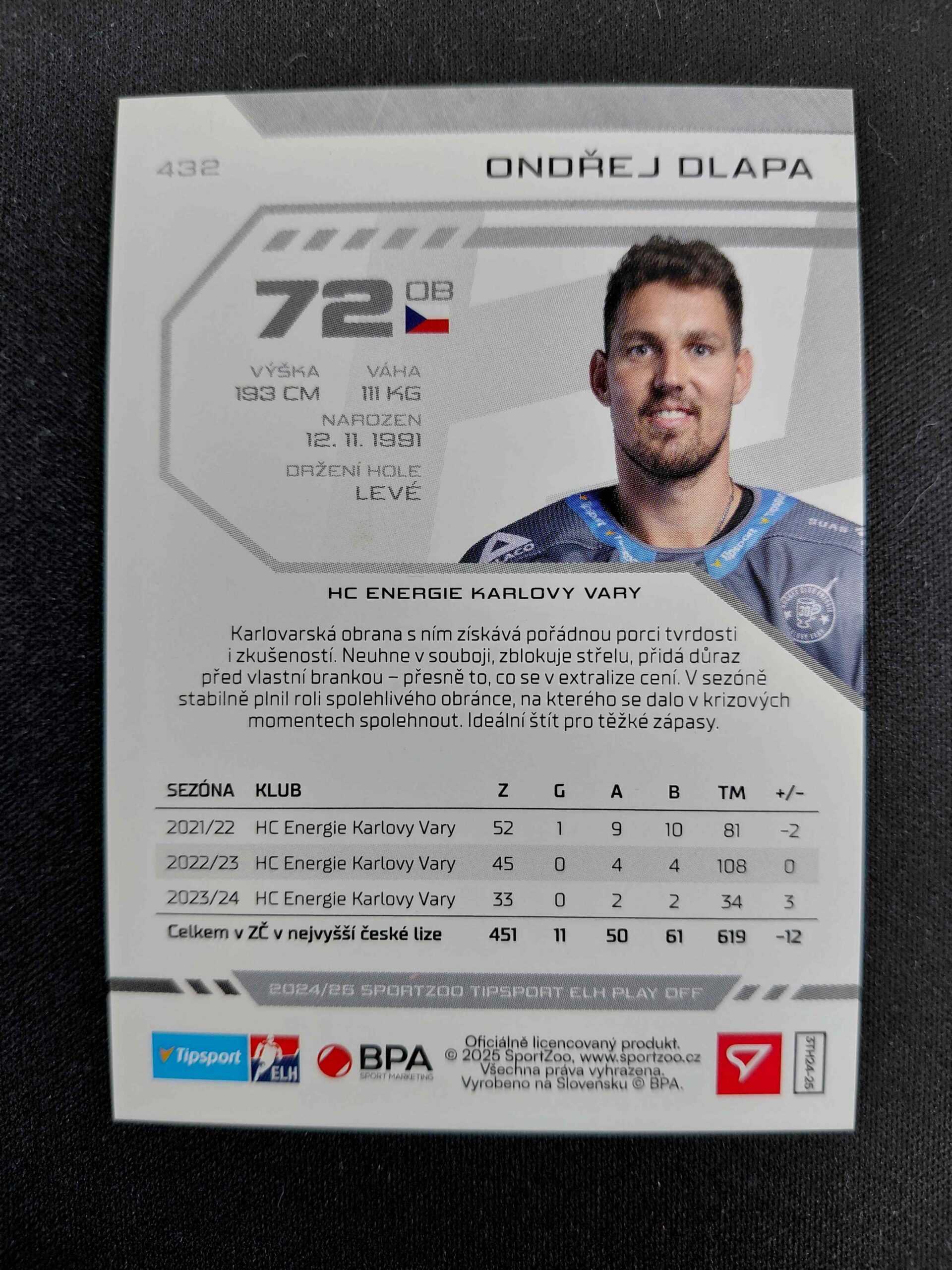 Sběratelská karta 2024/2025 Sportzoo Play Off Puck Marks 432 Ondřej Dlapa Paralel