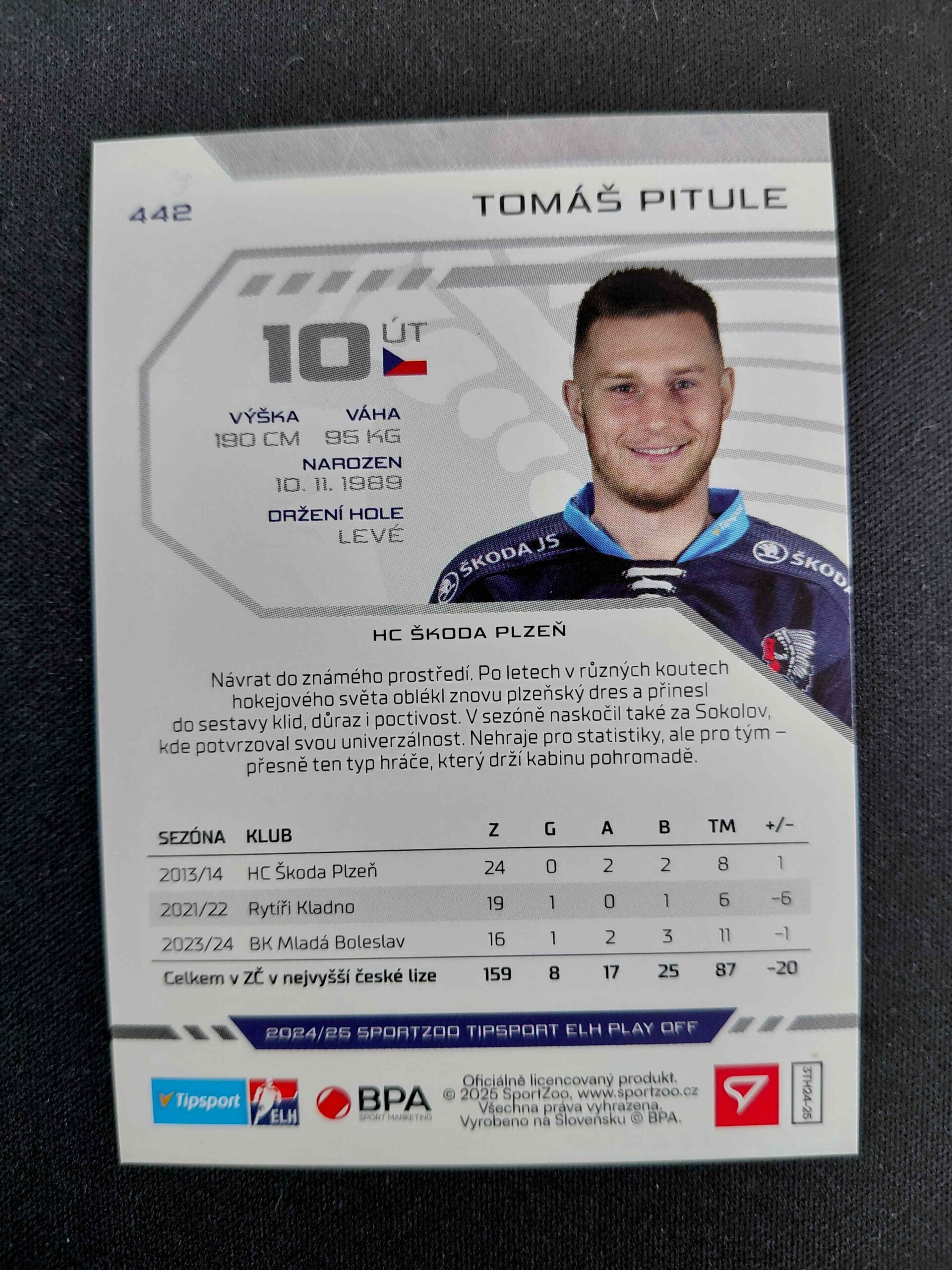 Sběratelská karta 2024/2025 Sportzoo Play Off Puck Marks 442 Tomáš Pitule Paralel