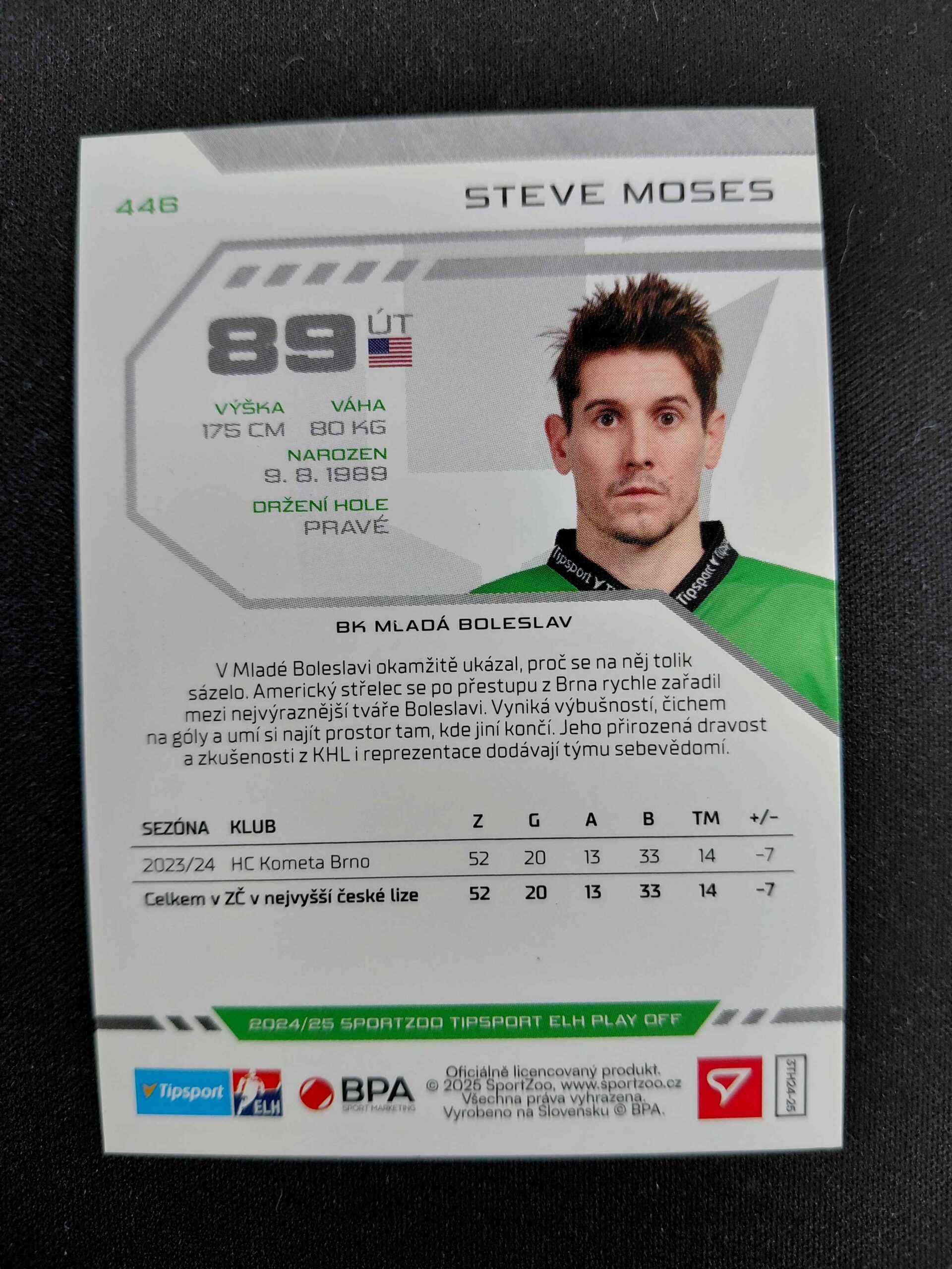 Sběratelská karta 2024/2025 Sportzoo Play Off Puck Marks 446 Steve Moses Paralel