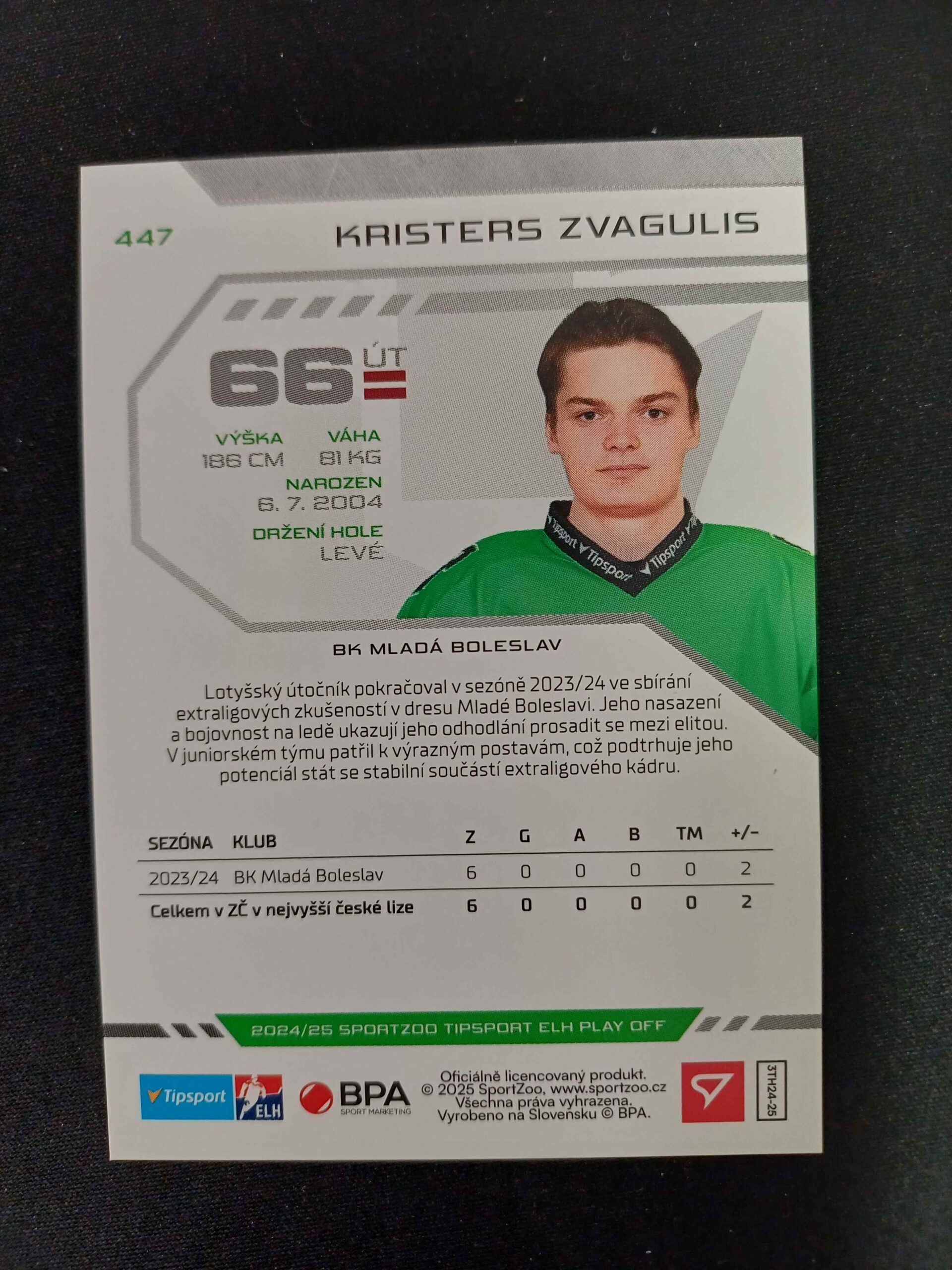 2024/2025 Sportzoo Play Off Puck Marks 447 Kristers Zvagulis Paralel