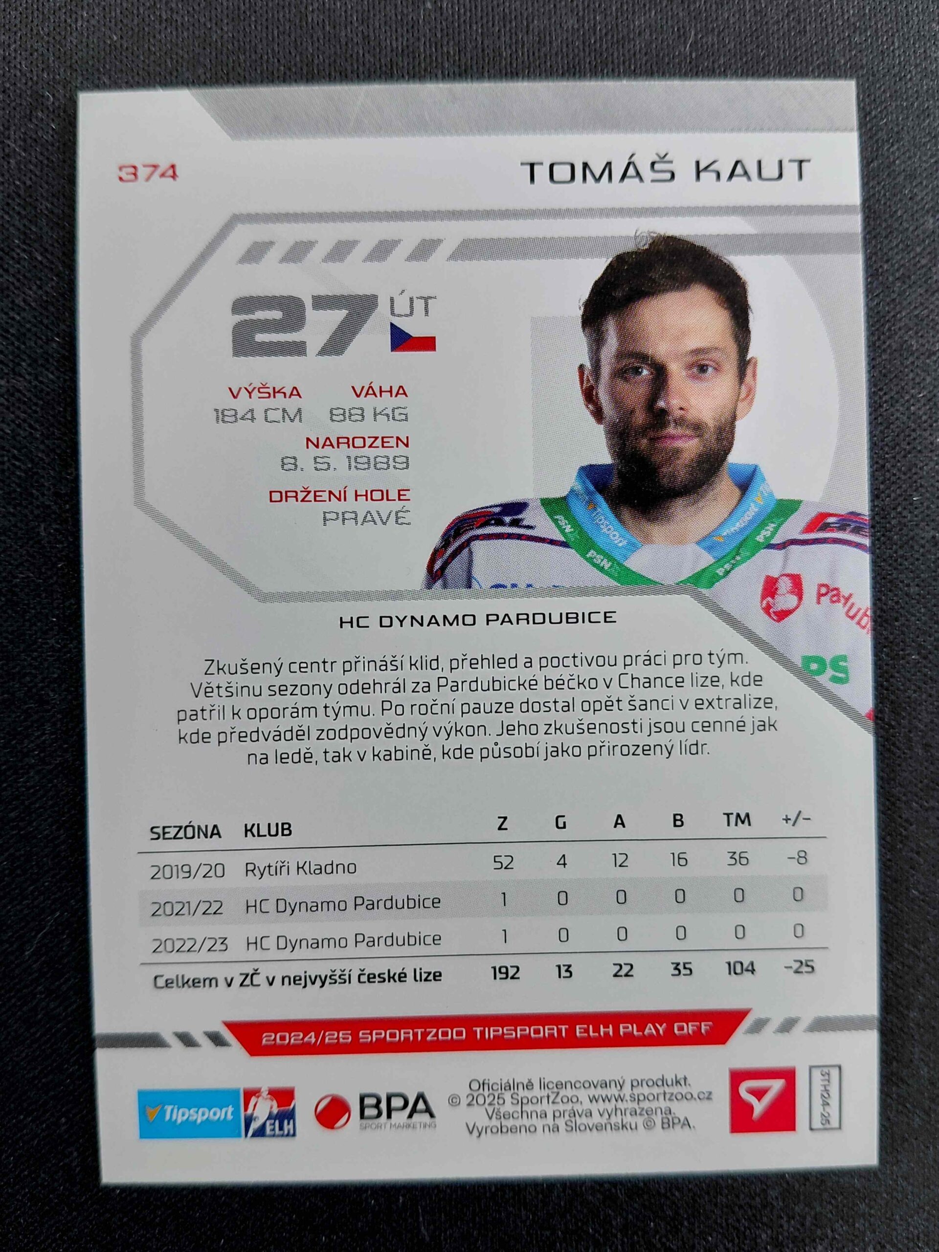 Sběratelská karta 2024/2025 Sportzoo Play Off Purple Iceberg 374 Tomáš Kaut Paralel 52/60