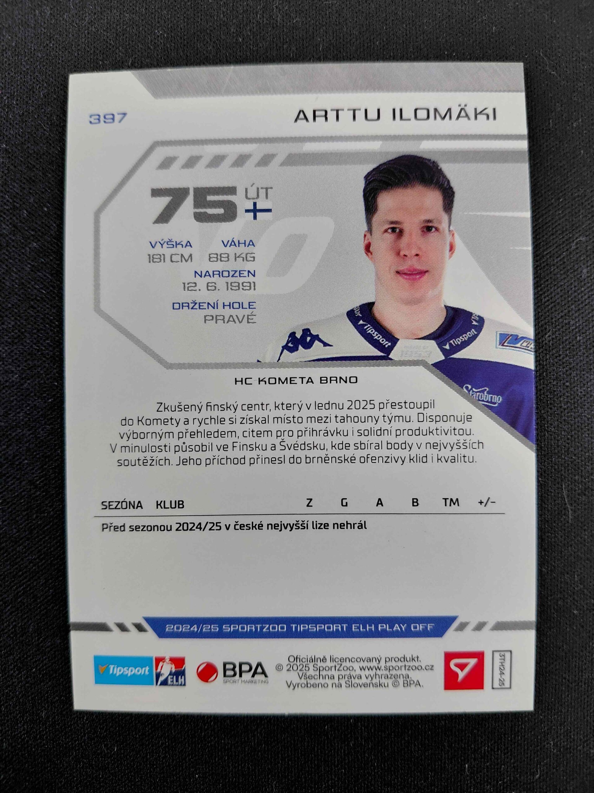 Sběratelská karta 2024/2025 Sportzoo Play Off Purple Iceberg 397 Arttu Ilomäki Paralel 19/60