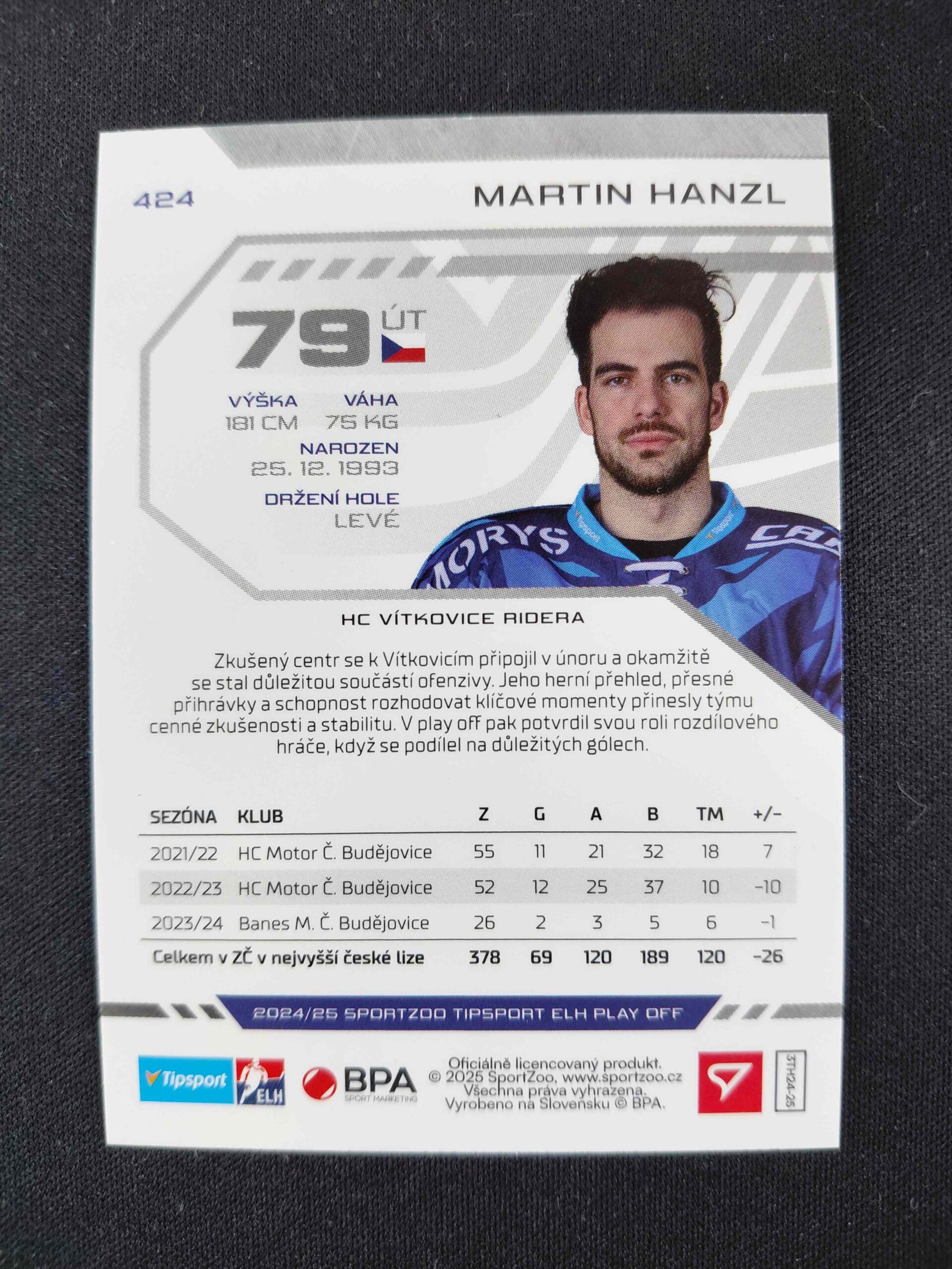Sběratelská karta 2024/2025 Sportzoo Play Off Purple Iceberg 424 Martin Hanzl Paralel 34/60