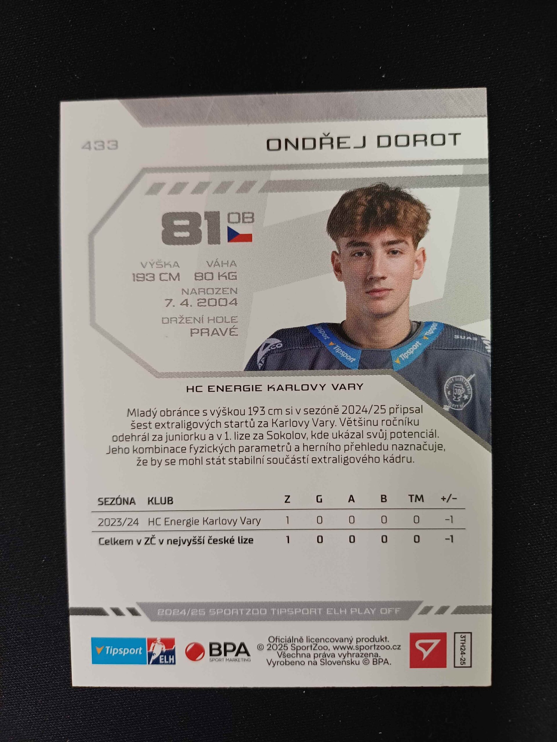 Sběratelská karta 2024/2025 Sportzoo Play Off Purple Iceberg 433 Ondřej Dorot Paralel 02/60
