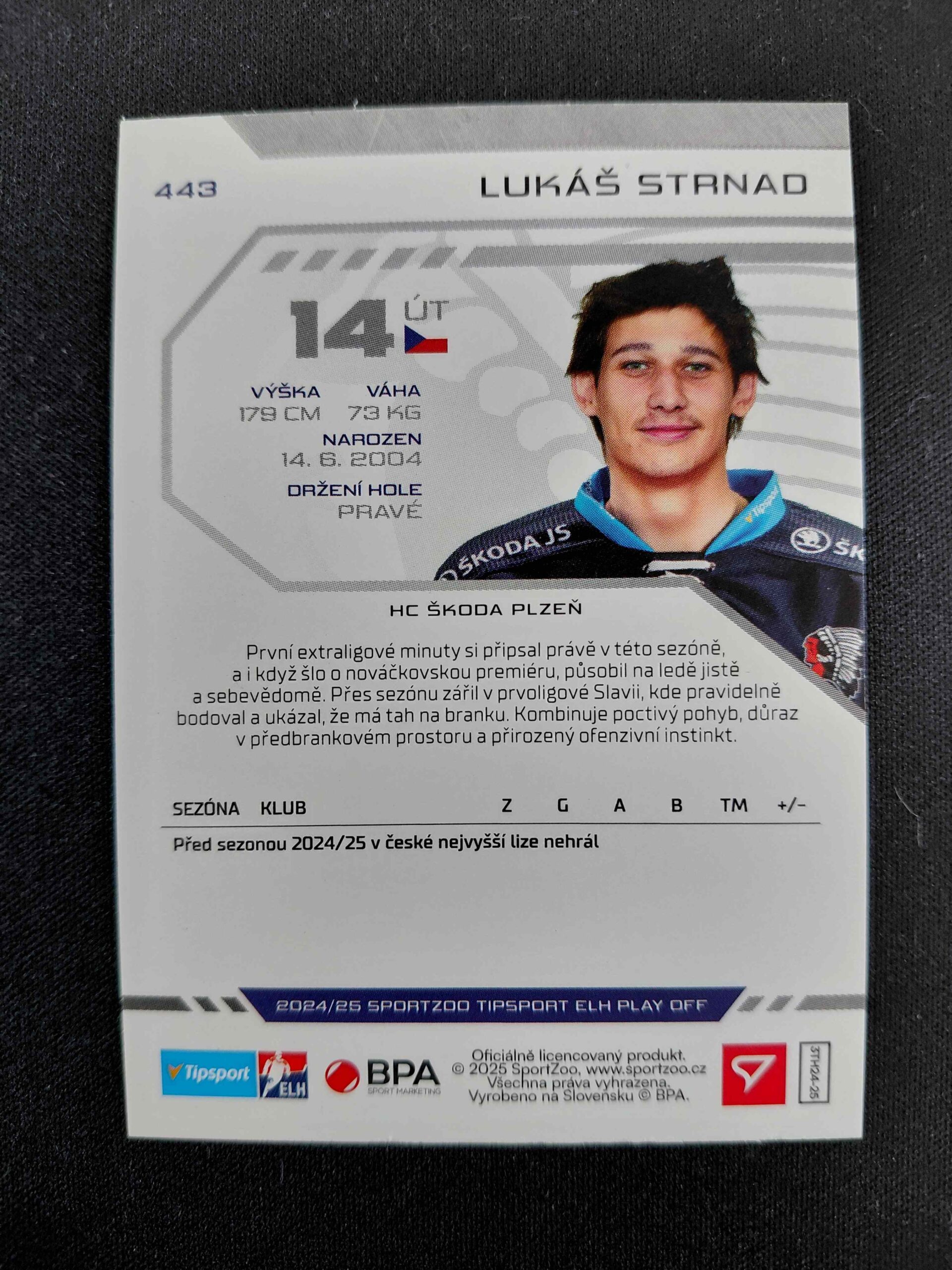 Sběratelská karta 2024/2025 Sportzoo Play Off Purple Iceberg 443 Lukáš Strnad Paralel 52/60