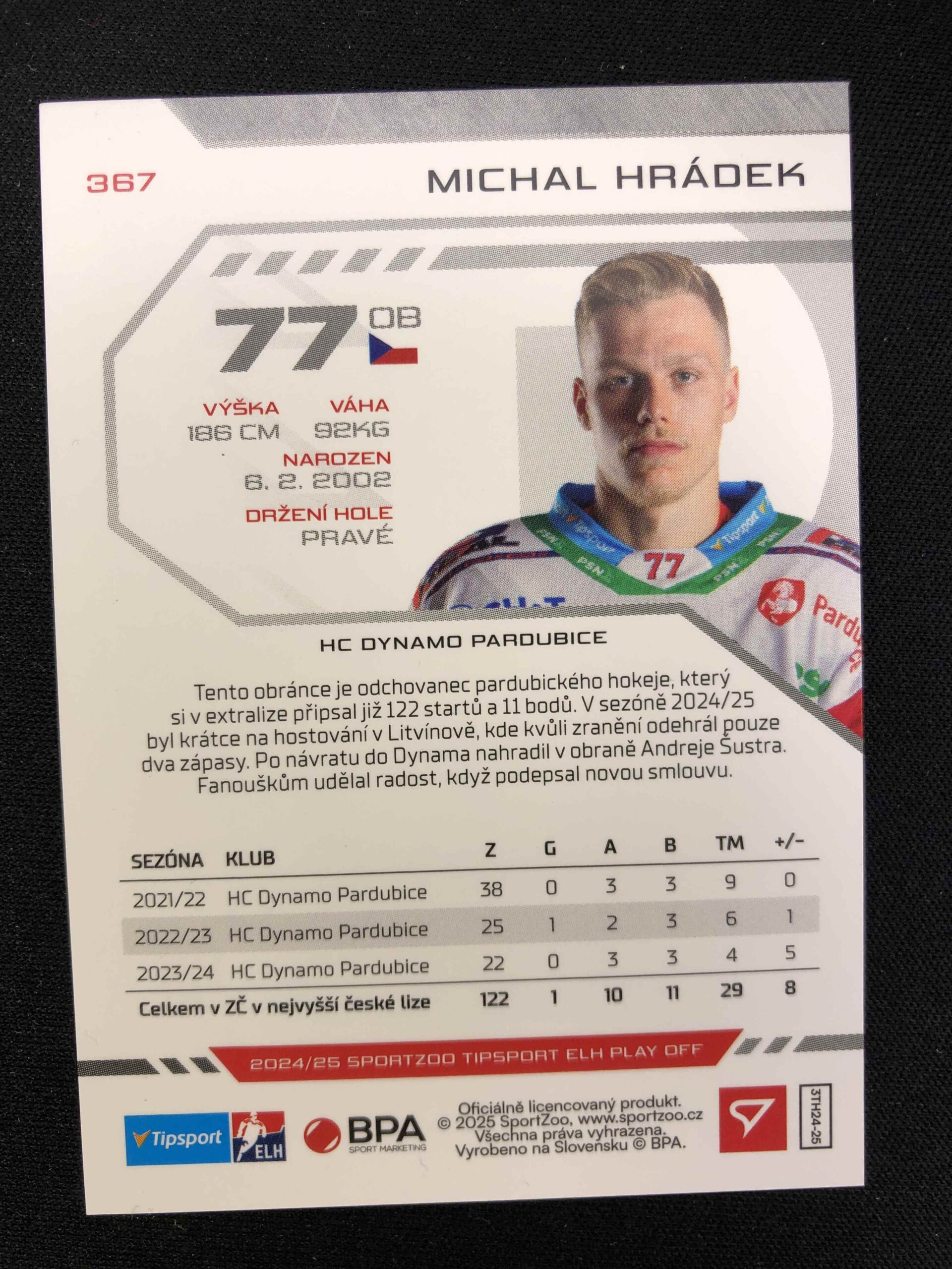 Sběratelská karta 2024/2025 Sportzoo Play Off Red Sparks 367 Michal Hrádek Paralel