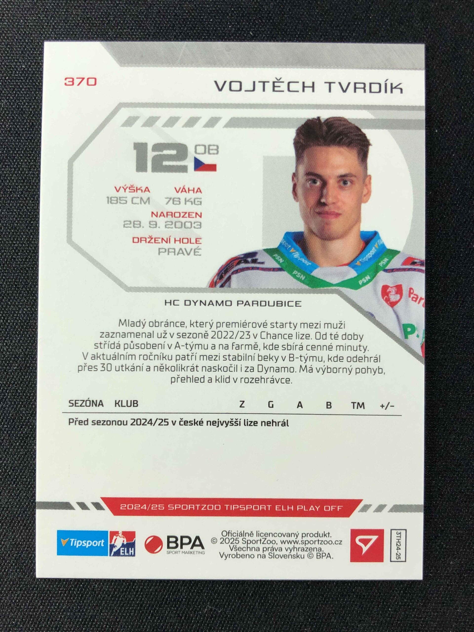 Sběratelská karta 2024/2025 Sportzoo Play Off Red Sparks 370 Vojtěch Tvrdík Paralel