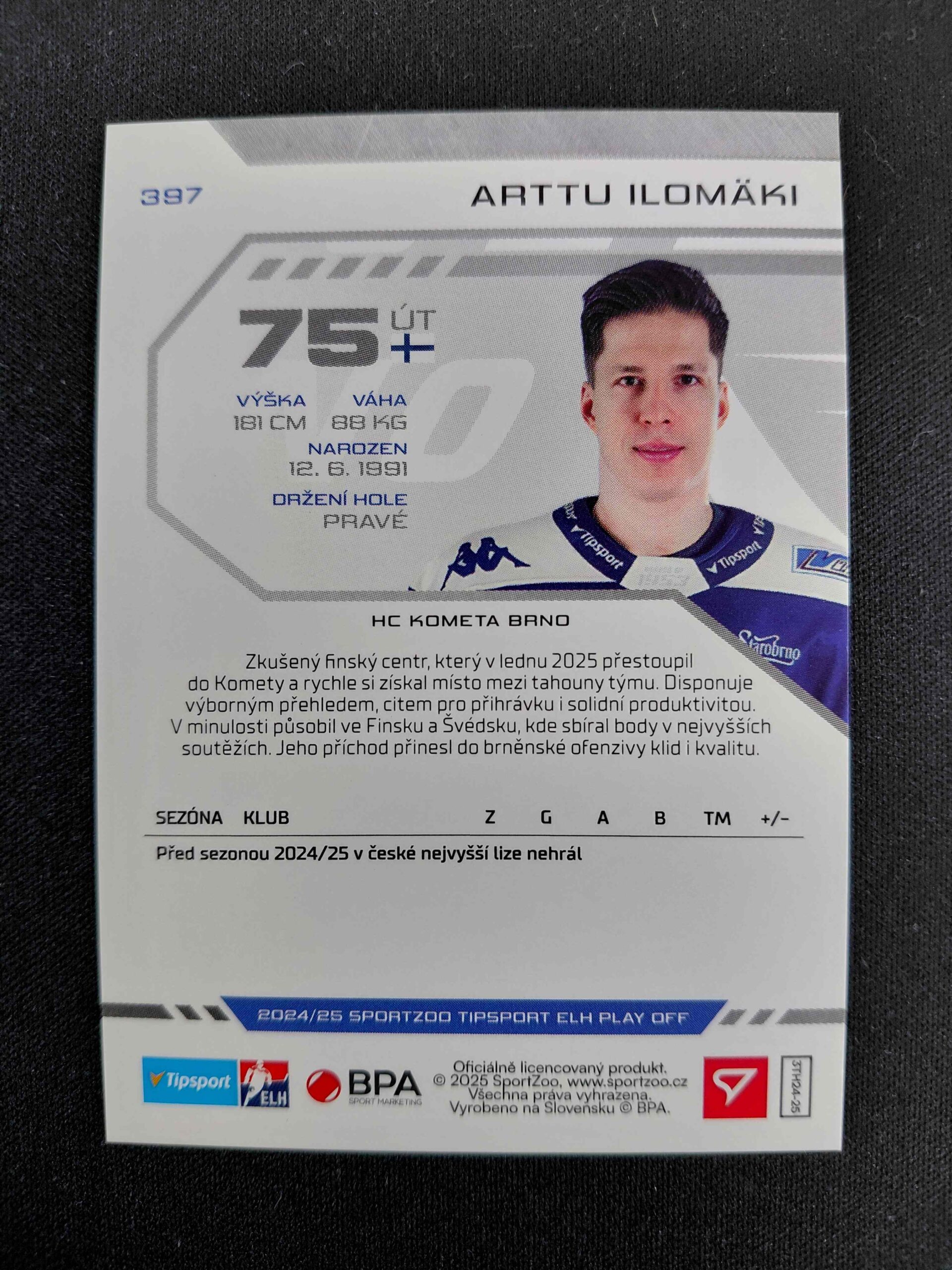 Sběratelská karta 2024/2025 Sportzoo Play Off Red Sparks 397 Arttu Ilomäki Paralel