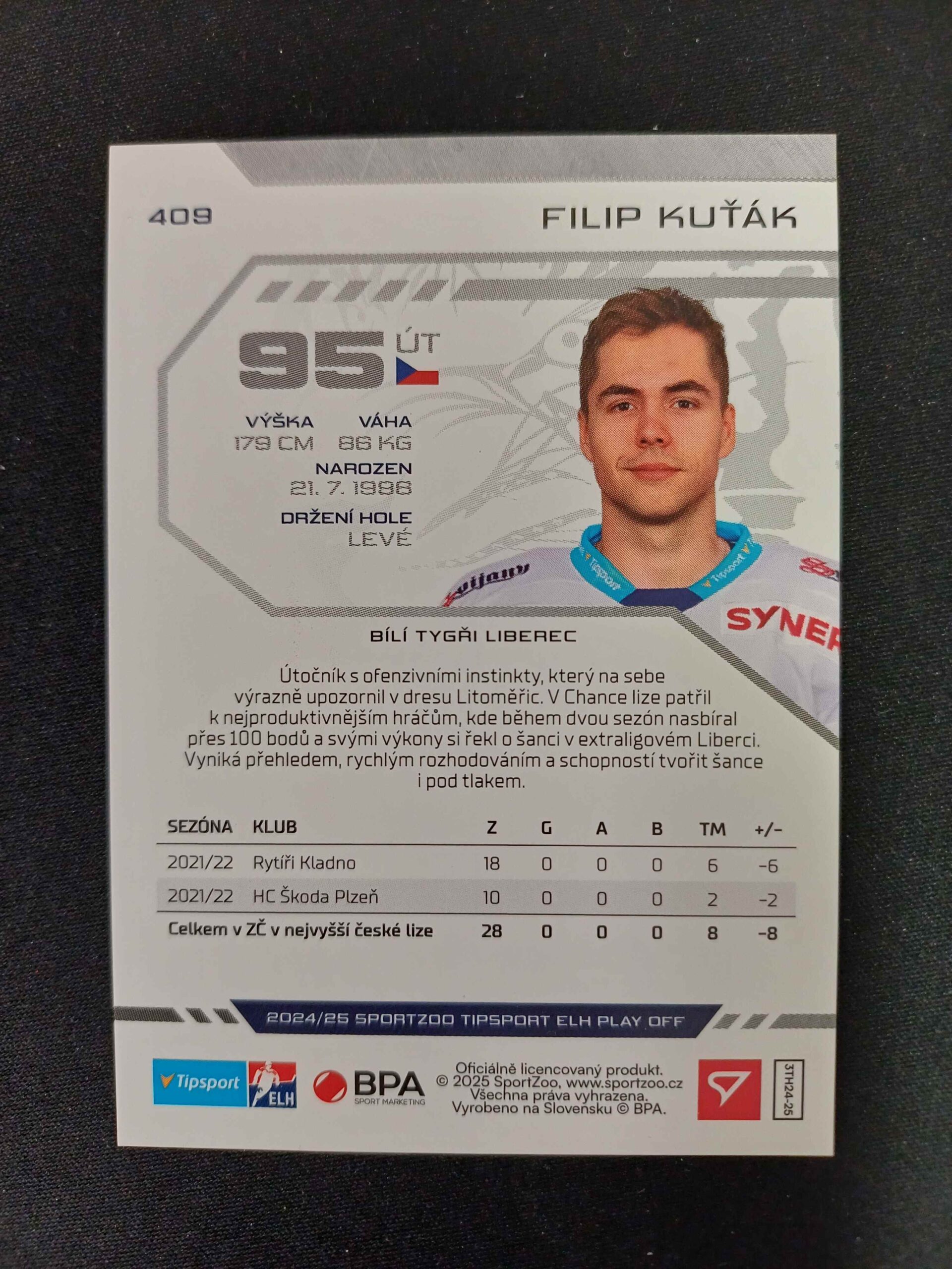 Sběratelská karta 2024/2025 Sportzoo Play Off Red Sparks 409 Filip Kuťák Paralel