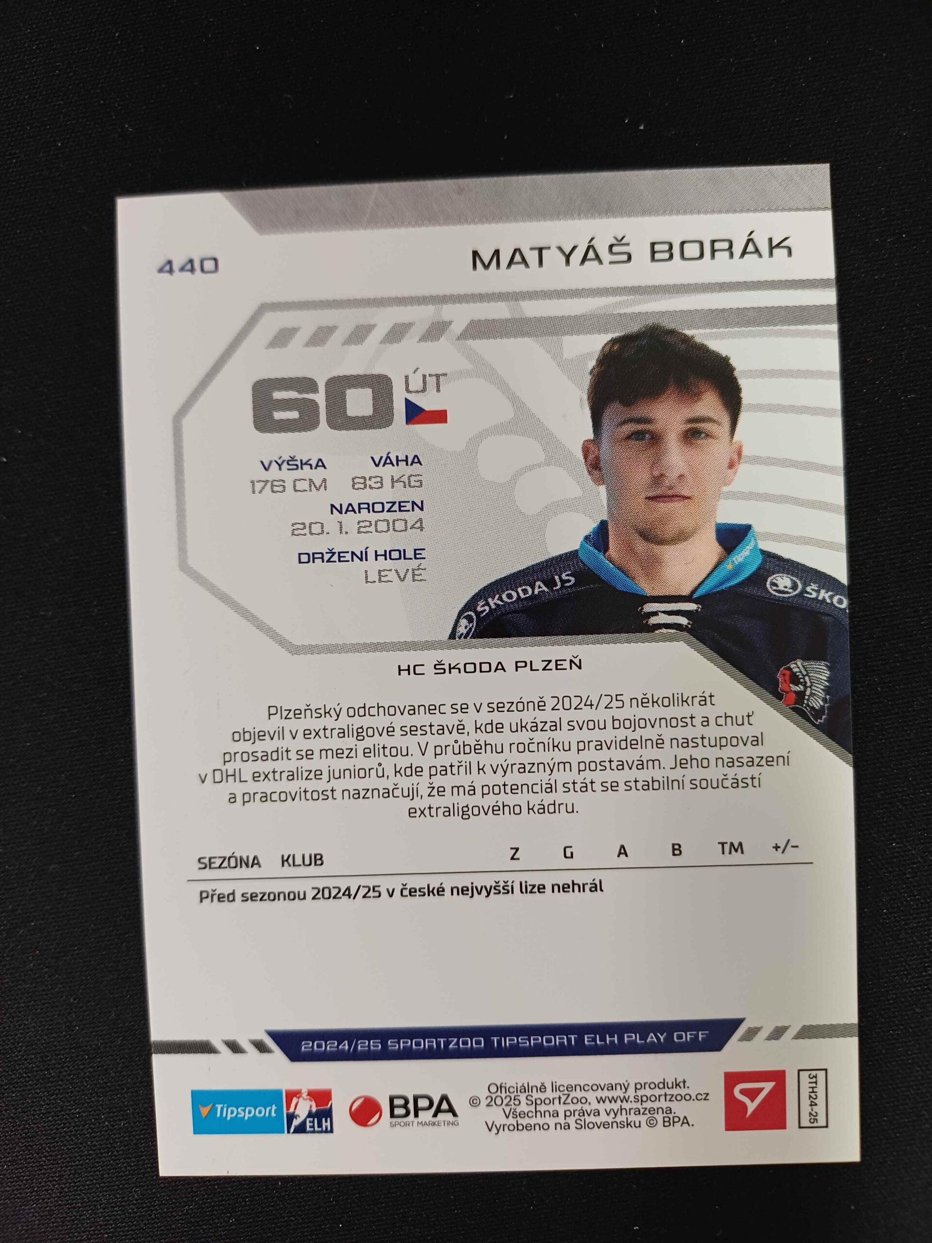 Sběratelská karta 2024/2025 Sportzoo Play Off Red Sparks 440 Matyáš Borák Paralel