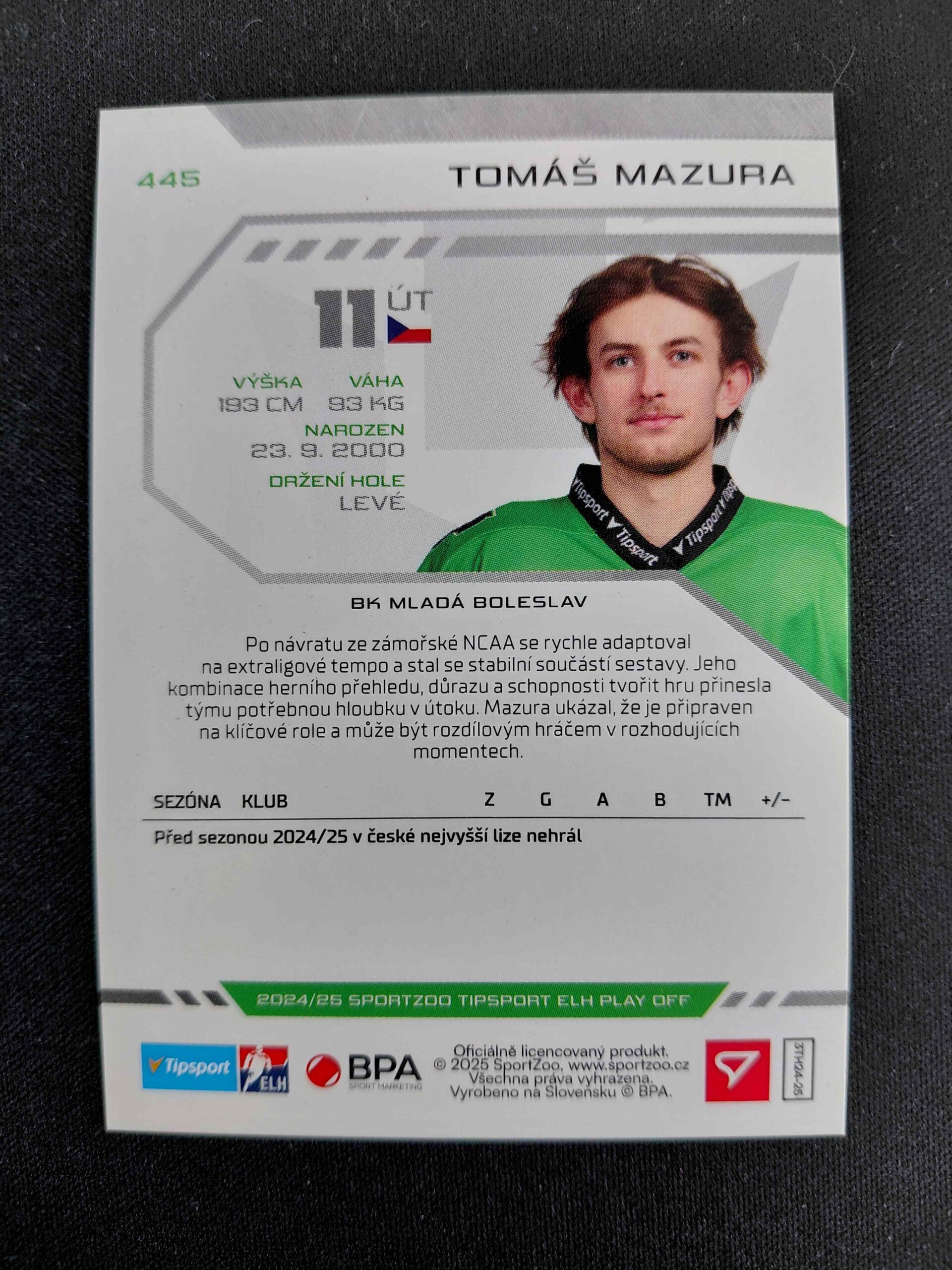 Sběratelská karta 2024/2025 Sportzoo Play Off Red Sparks 445 Tomáš Mazura Paralel