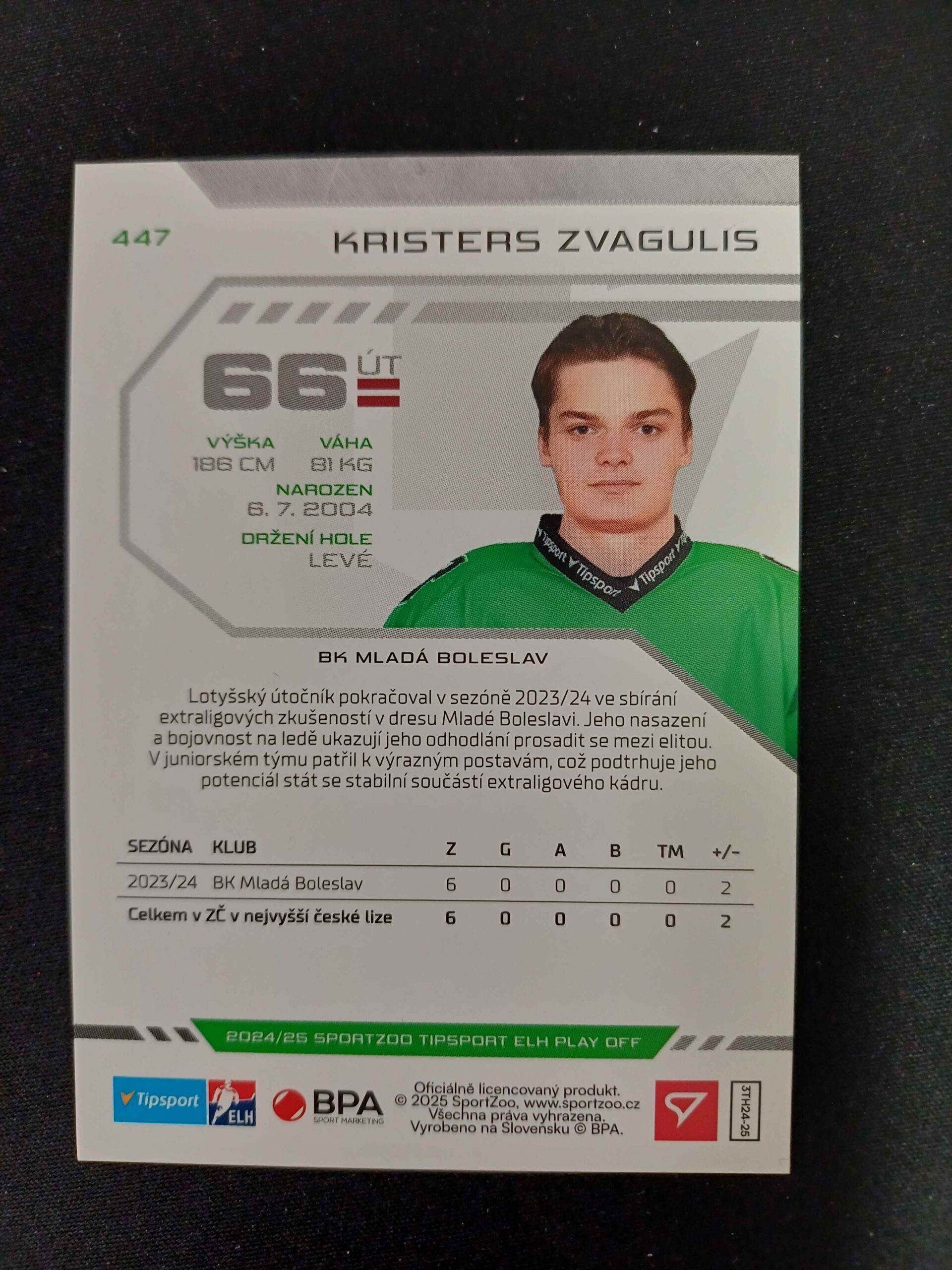 Sběratelská karta 2024/2025 Sportzoo Play Off Red Sparks 447 Kristers Zvagulis Paralel