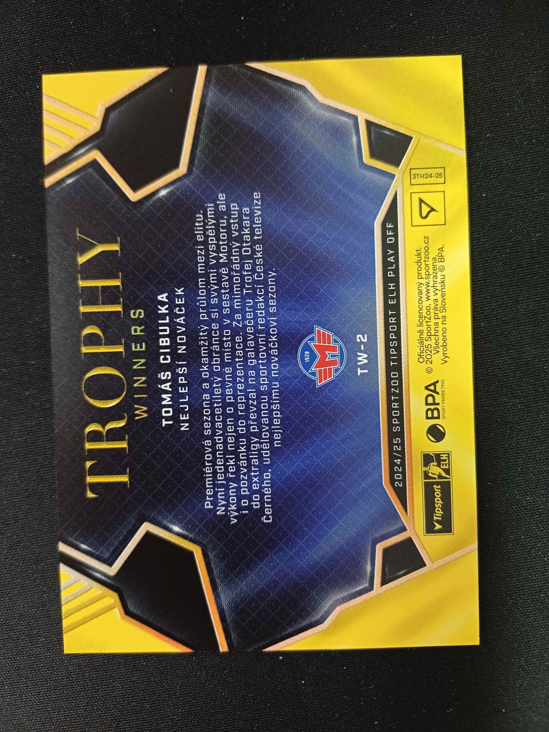 Sběratelská karta 2024/2025 Sportzoo Play Off Trophy Winners TW-2 Tomáš Cibulka Inzert