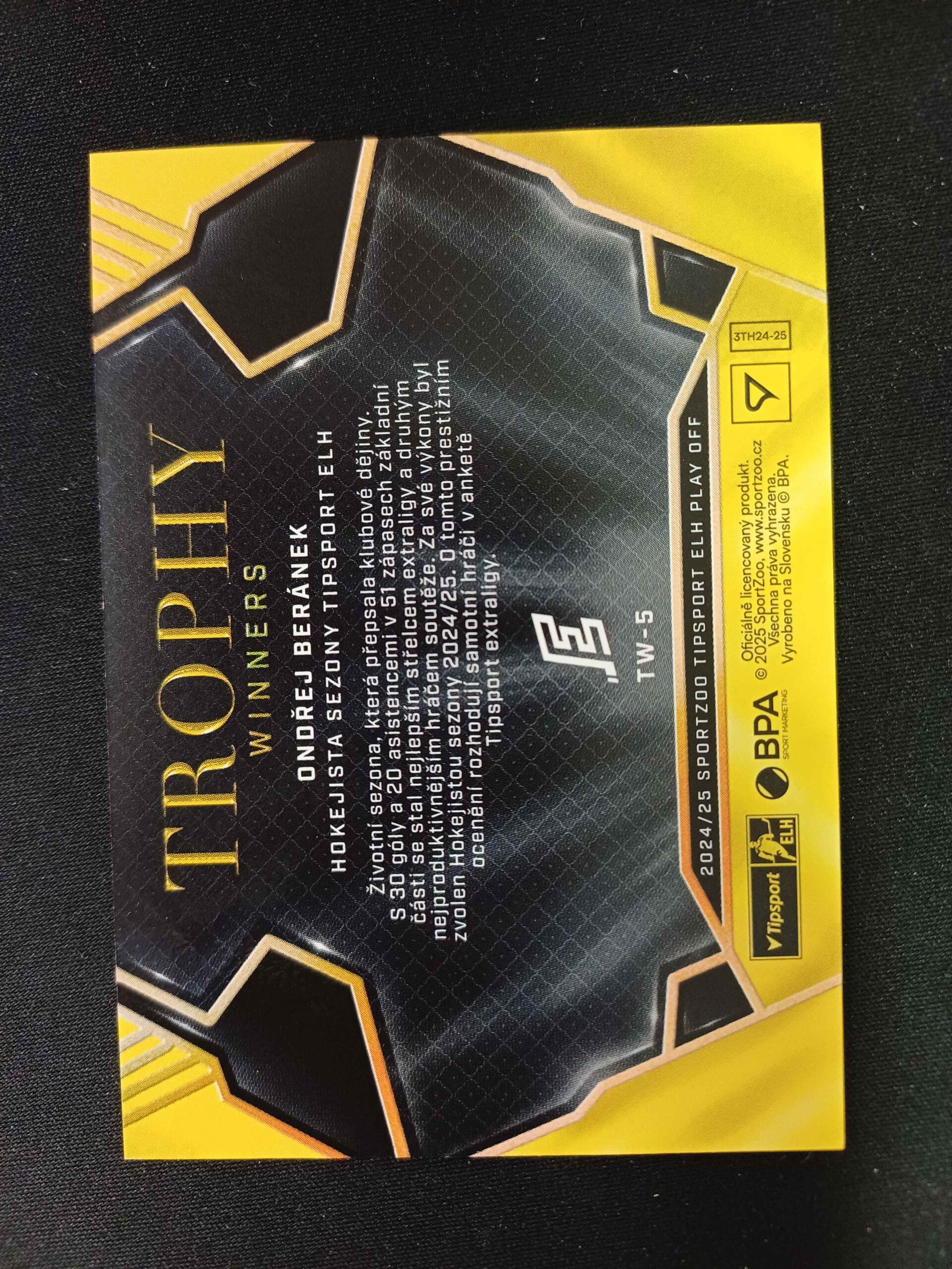 Sběratelská karta 2024/2025 Sportzoo Play Off Trophy Winners TW-5 Ondřej Beránek Inzert