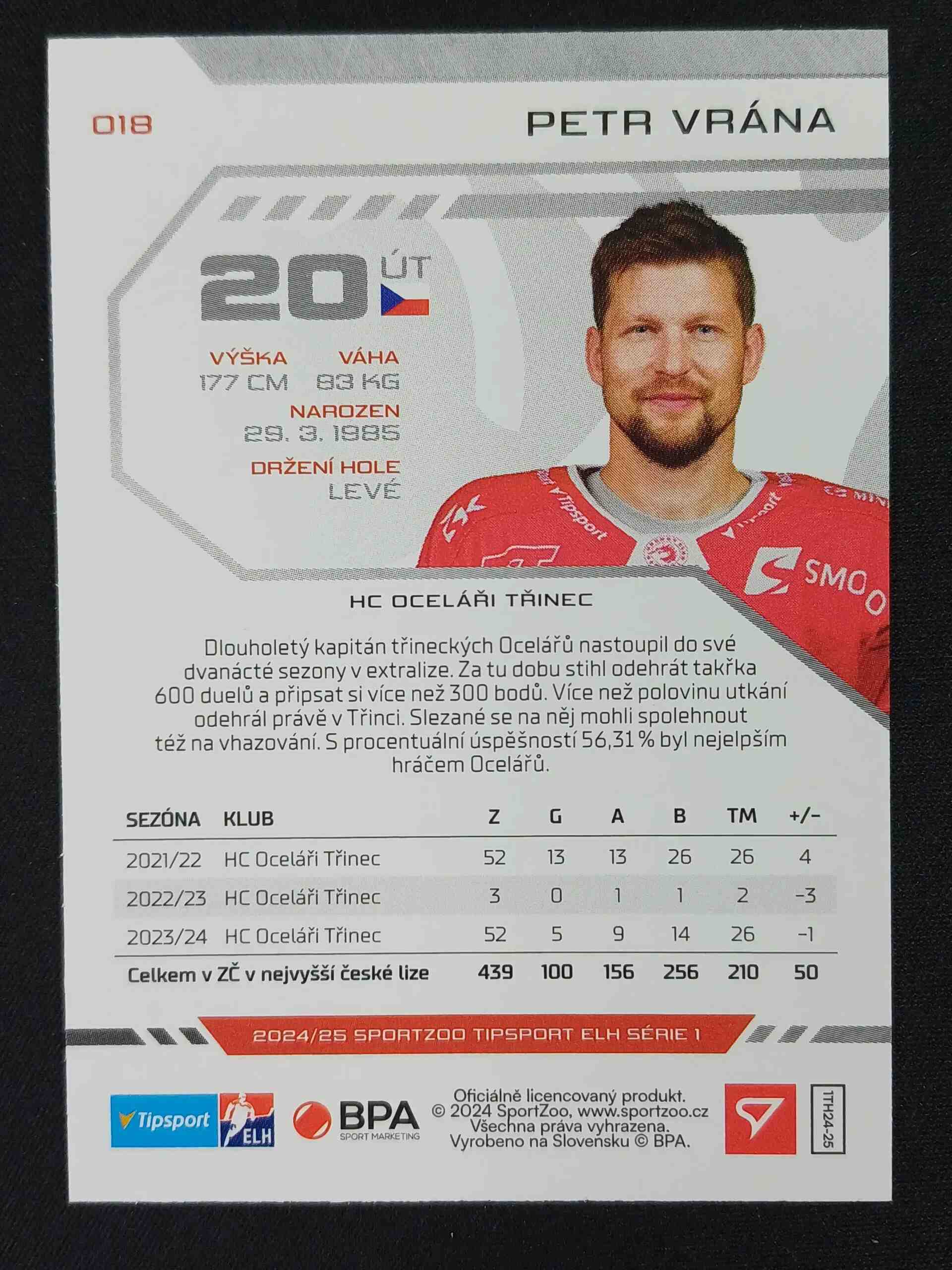 Sběratelská karta 2024/2025 Sportzoo Serie 1 Green Glitter 18 Petr Vrána Paralel 08/30