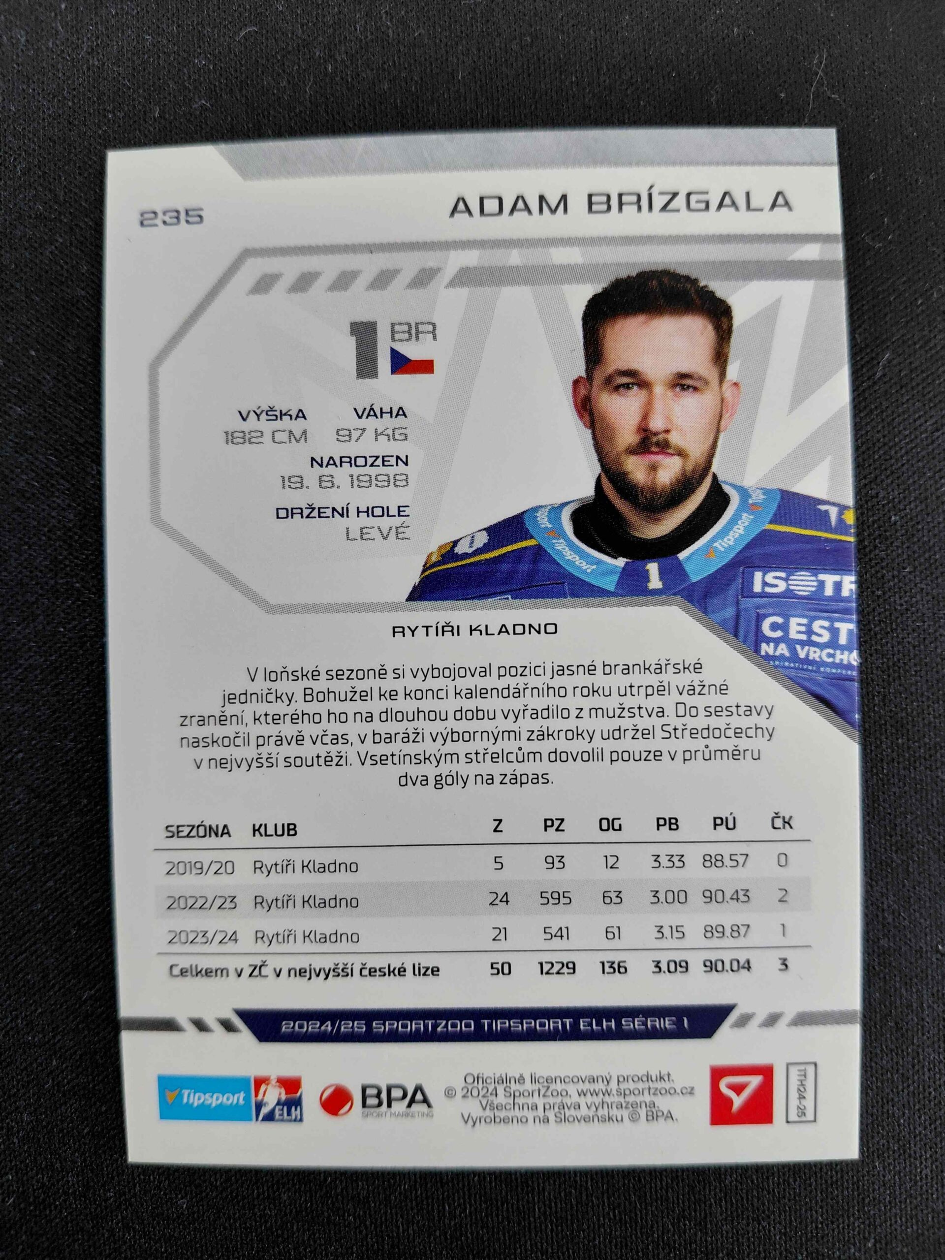 Sběratelská karta 2024/2025 Sportzoo Serie 1 Green Glitter 235 Adam Brízgala Paralel 10/30