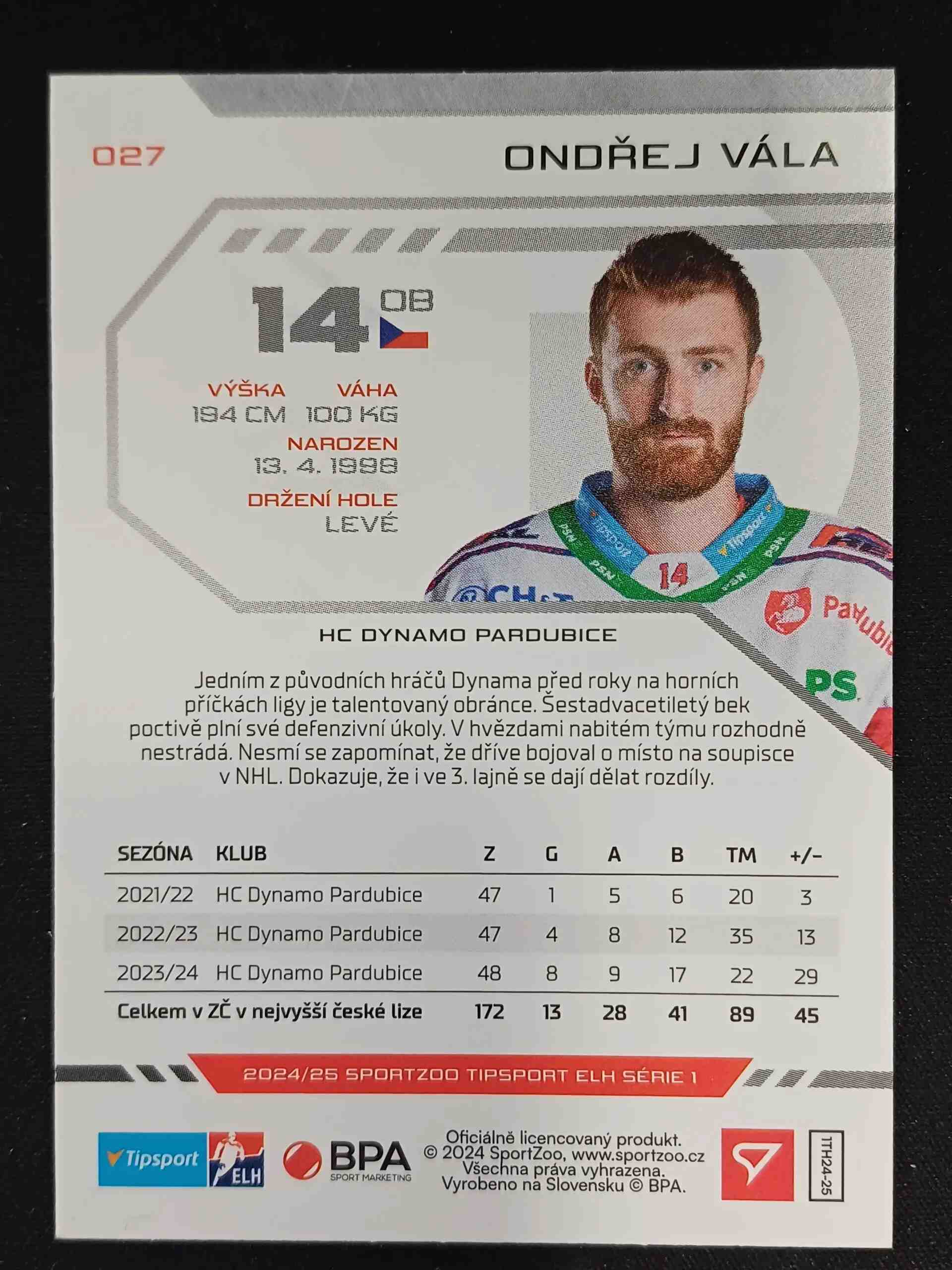 Sběratelská karta 2024/2025 Sportzoo Serie 1 Green Glitter 27 Ondřej Vála Paralel 22/30