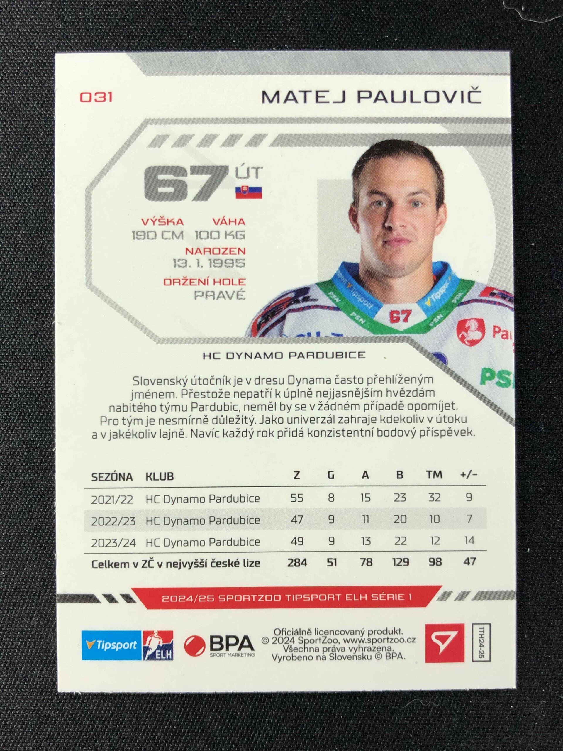 Sběratelská karta 2024/2025 Sportzoo Serie 1 Green Glitter 31 Matej Paulovič Paralel 15/30