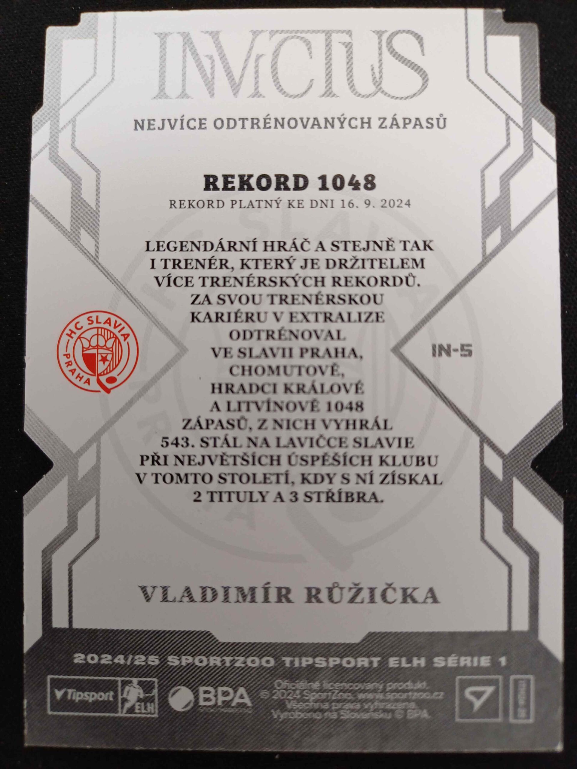 Sběratelská karta 2024/2025 Sportzoo Serie 1 Invictus Blue IN-5 Vladimír Růžička Inzert 05/35
