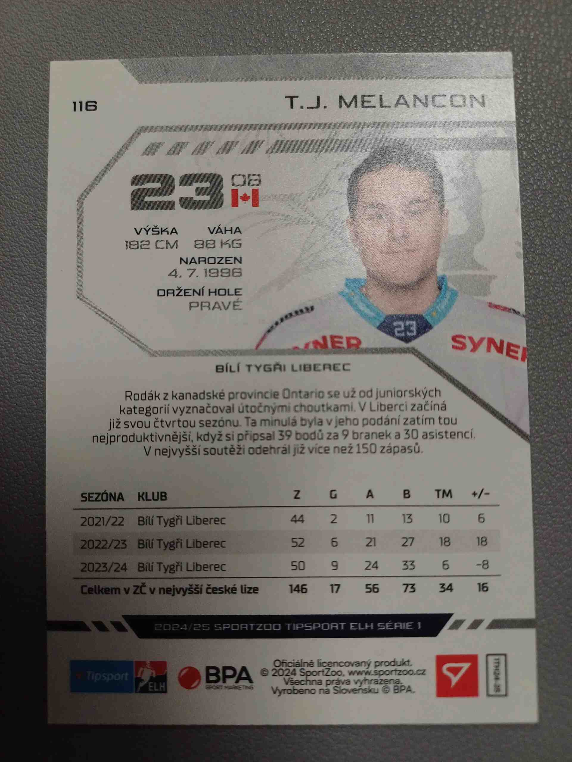 Sběratelská karta 2024/2025 Sportzoo Serie 1 Puck Marks 116 TJ. Melancon Paralel