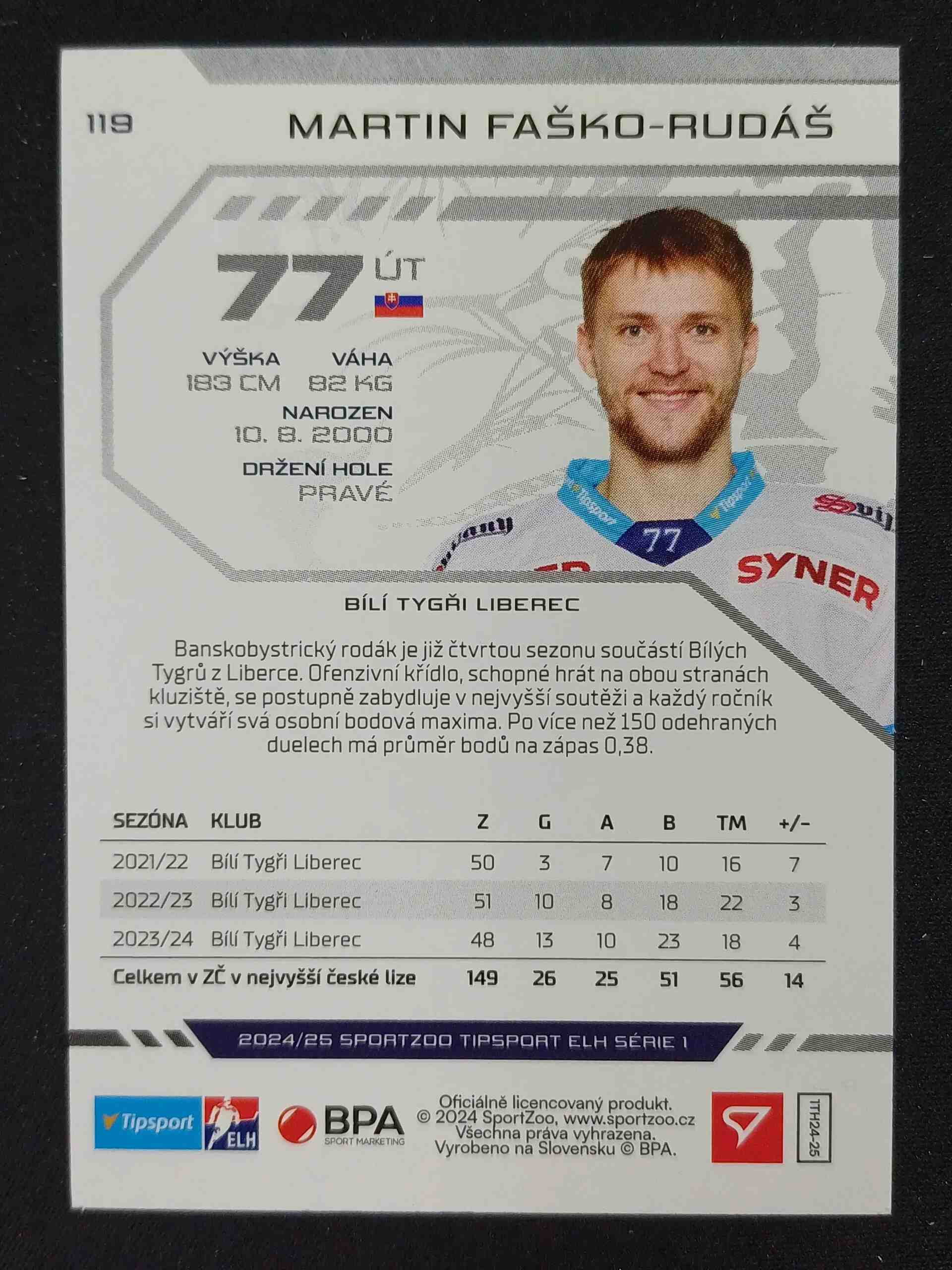 Sběratelská karta 2024/2025 Sportzoo Serie 1 Puck Marks 119 Martin Faško-Rudáš Paralel