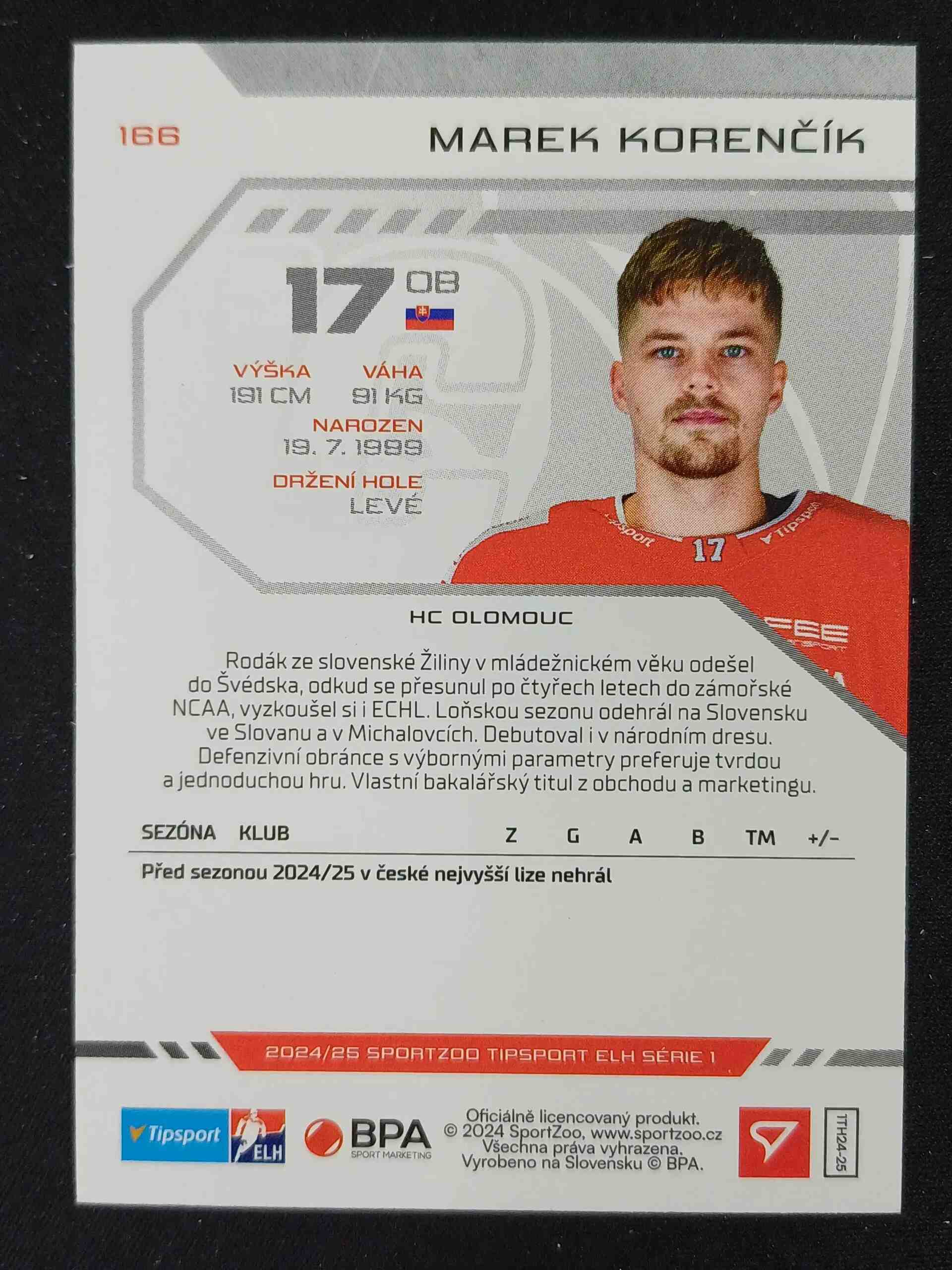 Sběratelská karta 2024/2025 Sportzoo Serie 1 Puck Marks 166 Marek Korenčík Paralel