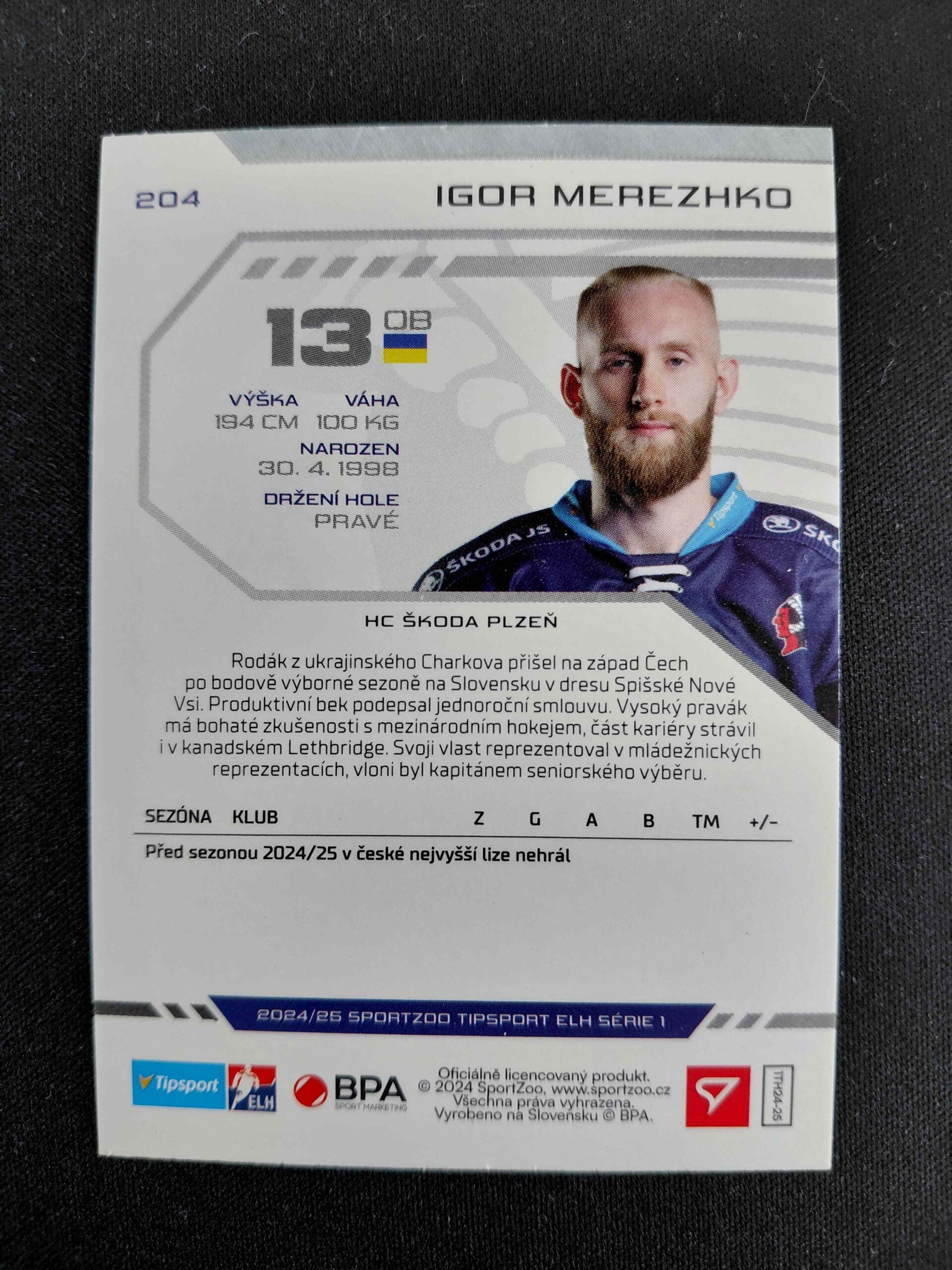 Sběratelská karta 2024/2025 Sportzoo Serie 1 Puck Marks 204 Igor Merezhko Paralel