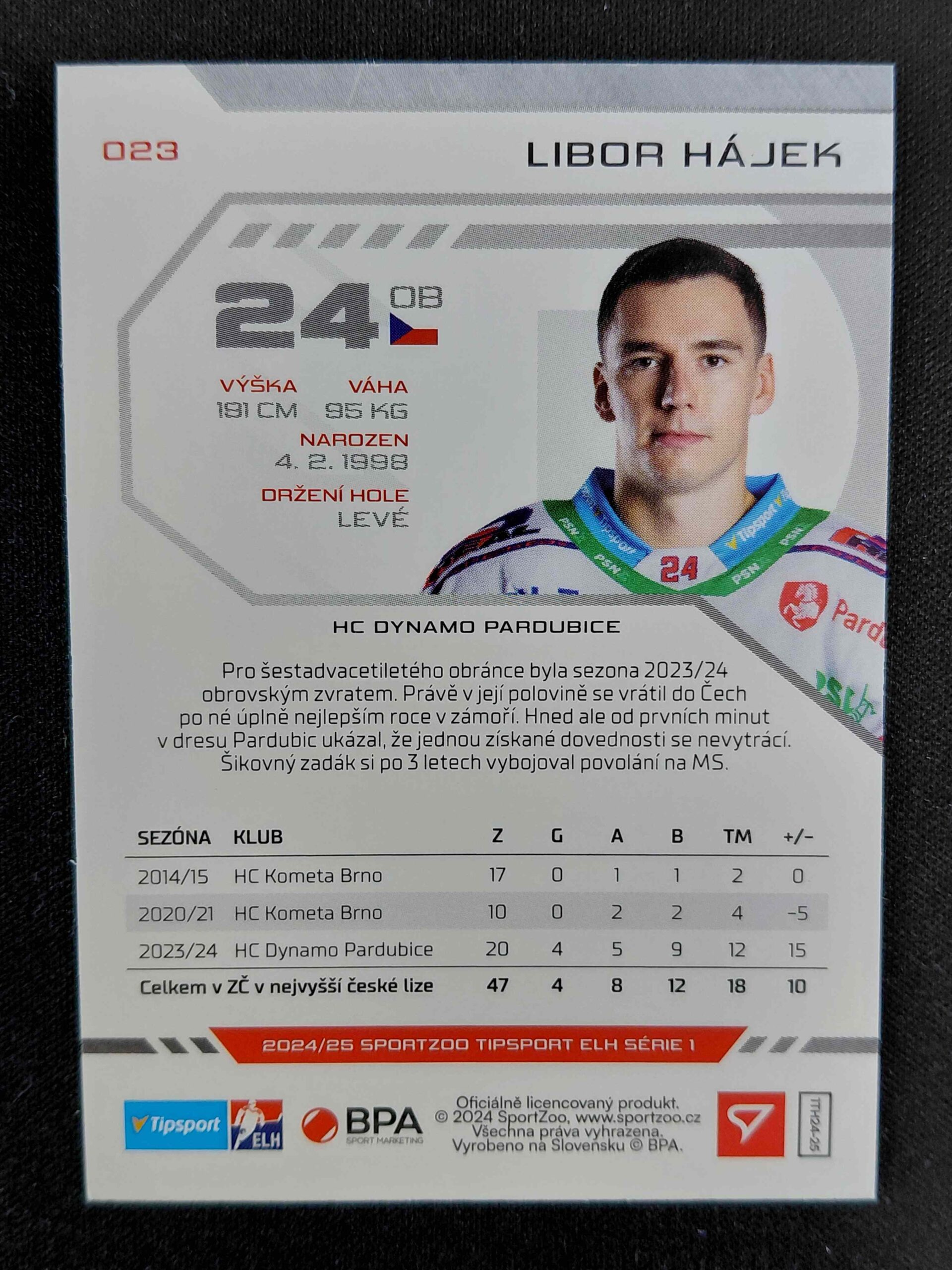 Sběratelská karta 2024/2025 Sportzoo Serie 1 Puck Marks 23 Libor Hájek Paralel