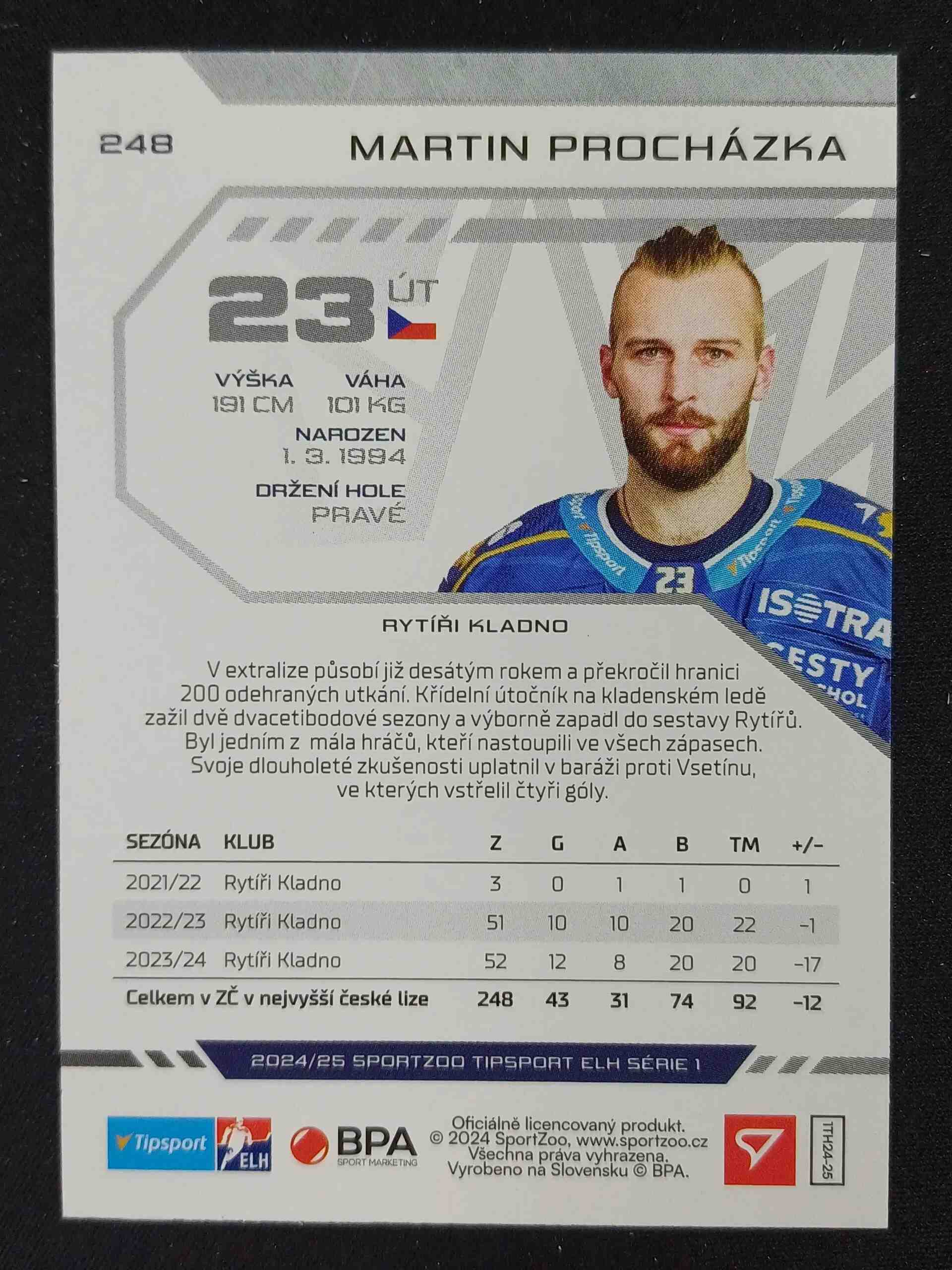 Sběratelská karta 2024/2025 Sportzoo Serie 1 Puck Marks 248 Martin Procházka Paralel