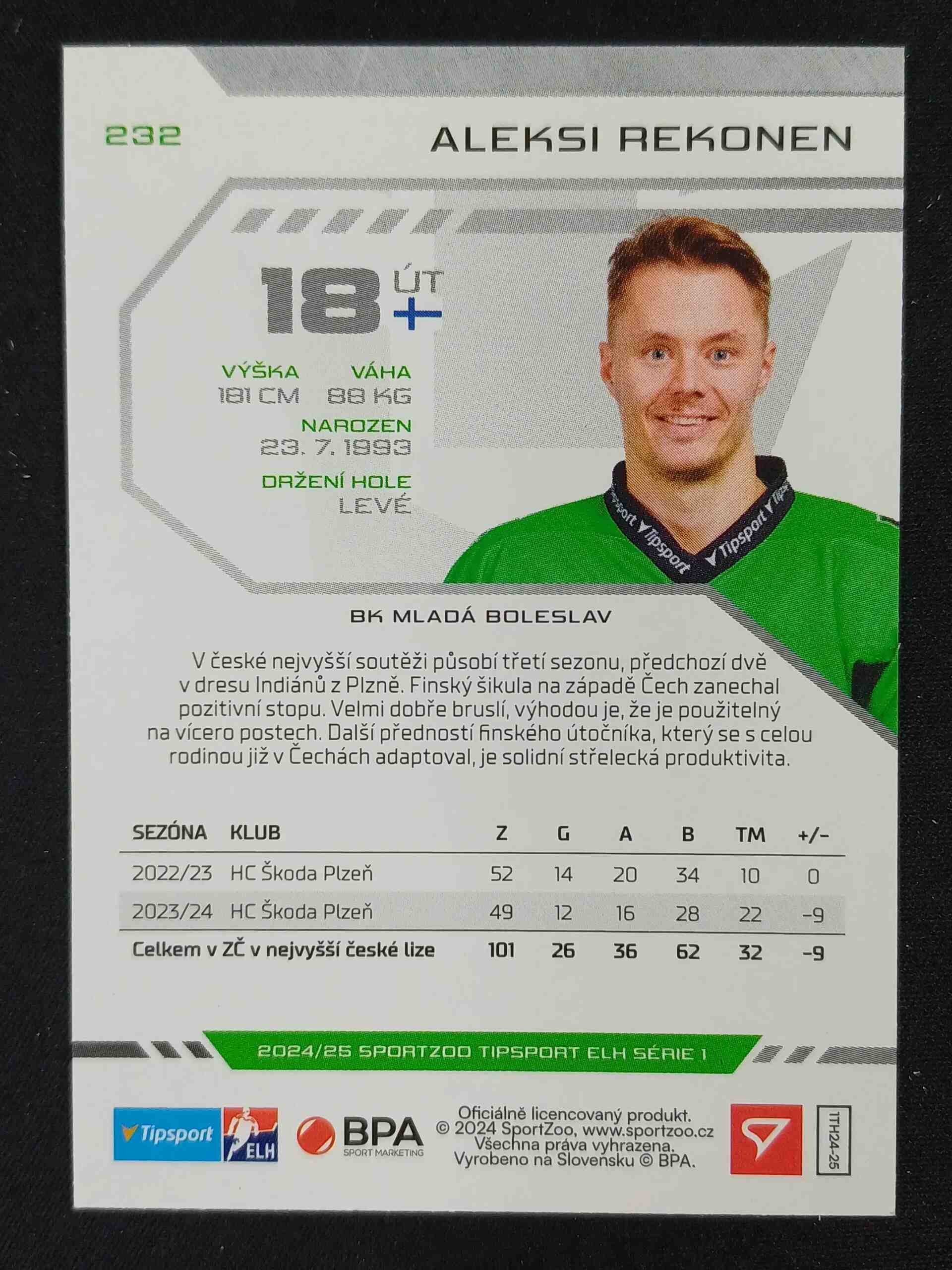 | Hráč | Aleksi Rekonen |