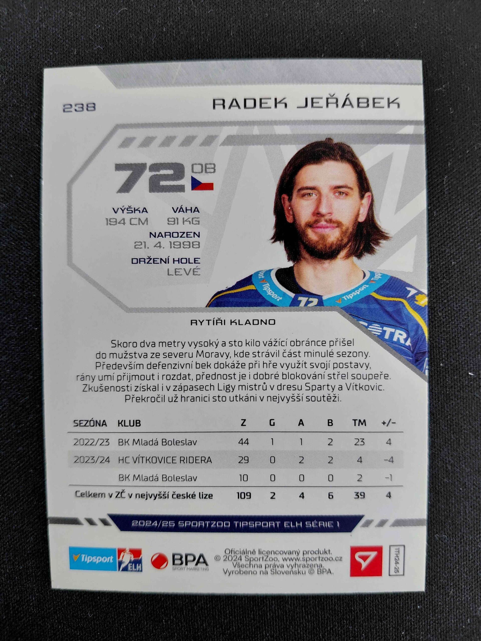 Sběratelská karta 2024/2025 Sportzoo Serie 1 Purple Iceberg 238 Radek Jeřábek Paralel 15/60