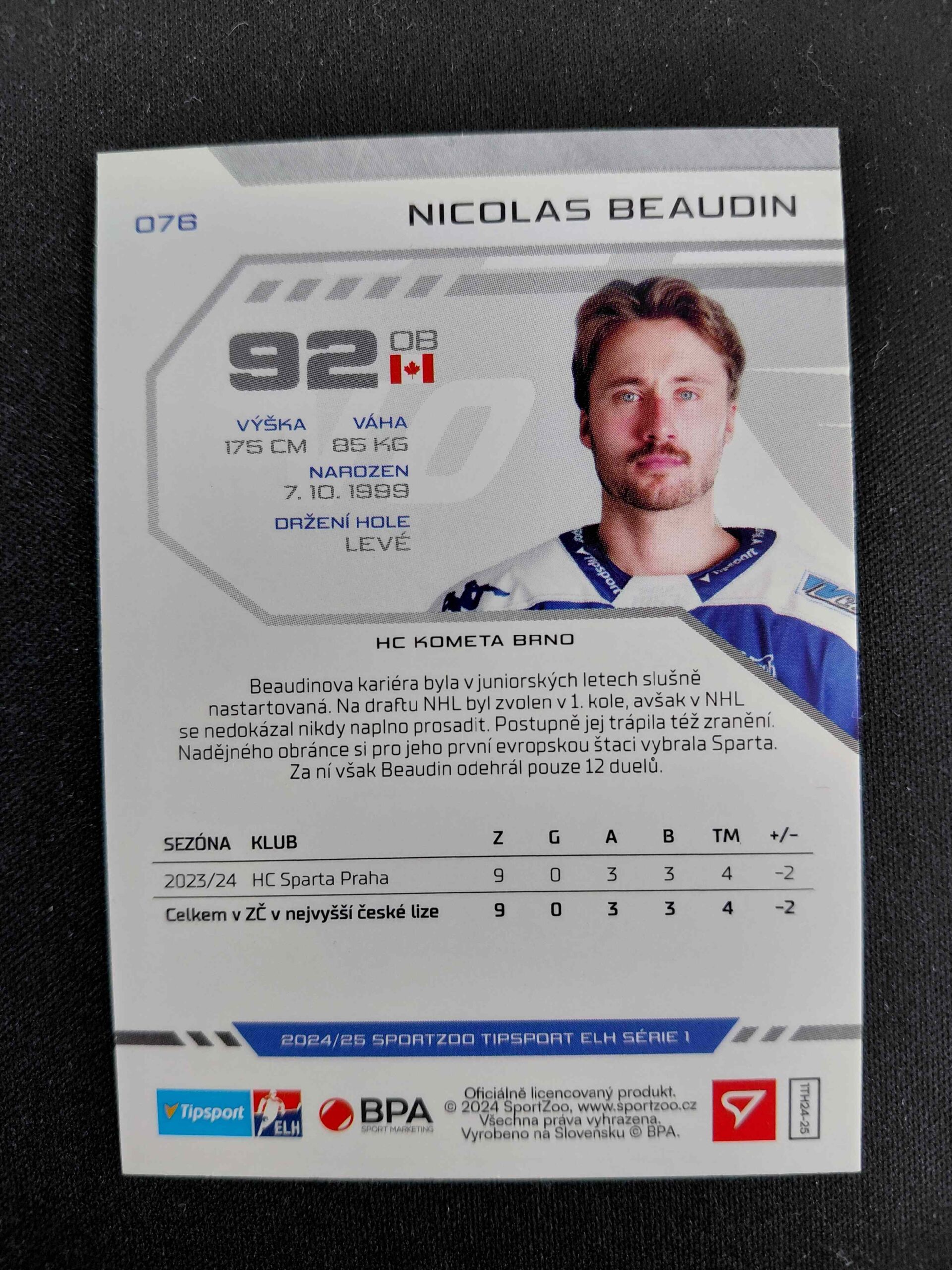 Sběratelská karta 2024/2025 Sportzoo Serie 1 Purple Iceberg 76 Nicolas Beaudin Paralel 57/660