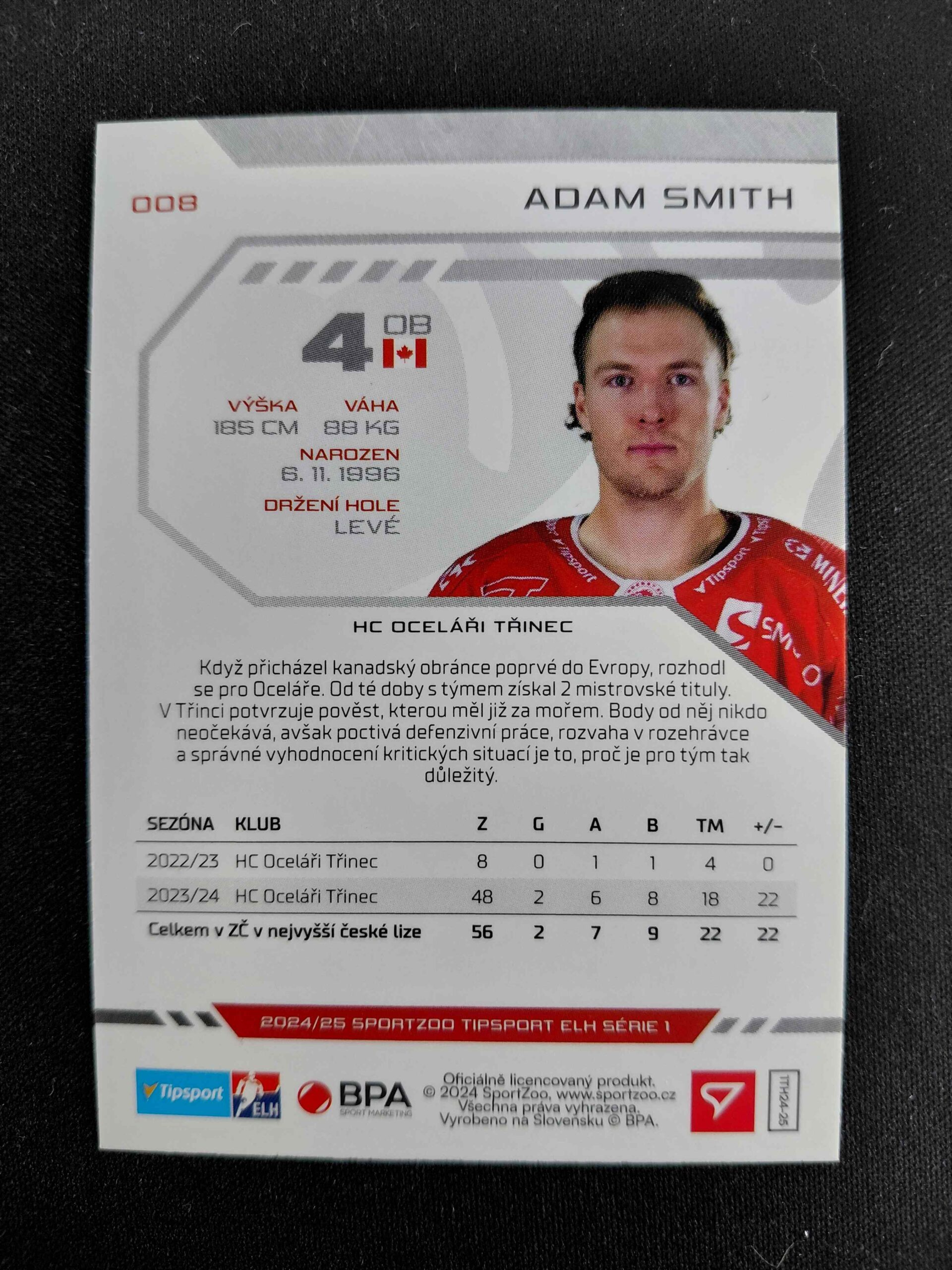 Sběratelská karta 2024/2025 Sportzoo Serie 1 Purple Iceberg 8 Adam Smith Paralel 12/60