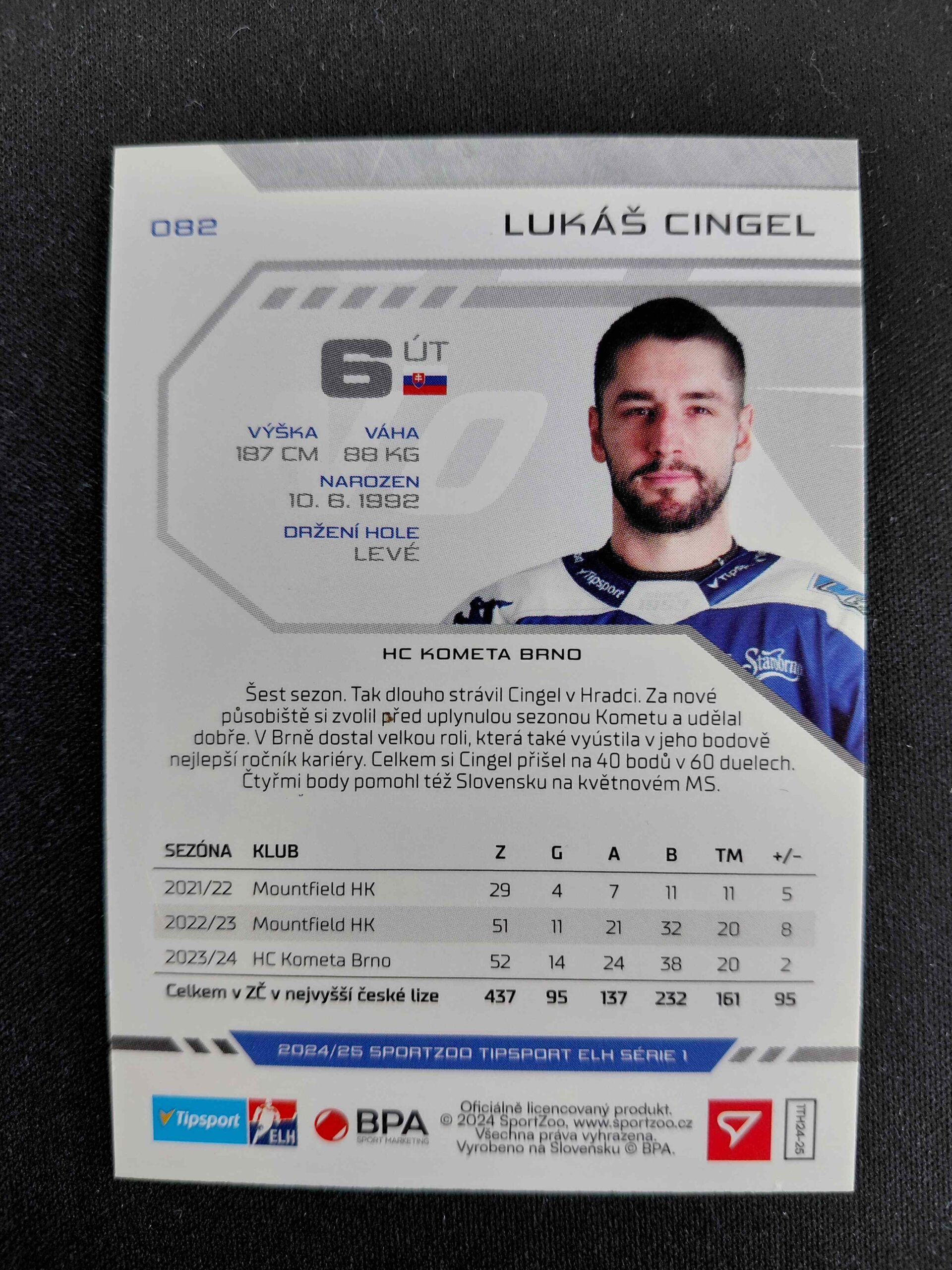 Sběratelská karta 2024/2025 Sportzoo Serie 1 Purple Iceberg 82 Lukáš Cingel Paralel 24/60