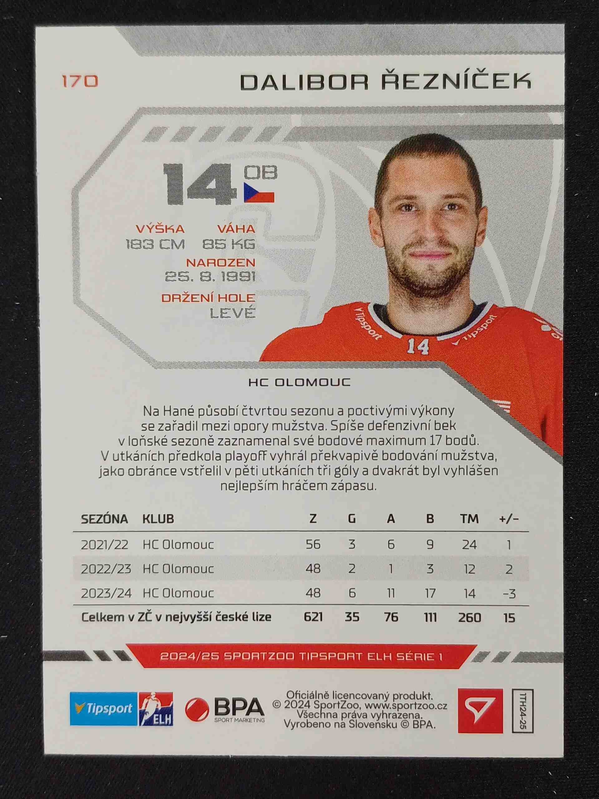 Sběratelská karta 2024/2025 Sportzoo Serie 1 Red Sparks 170 Dalibor Řezníček Paralel