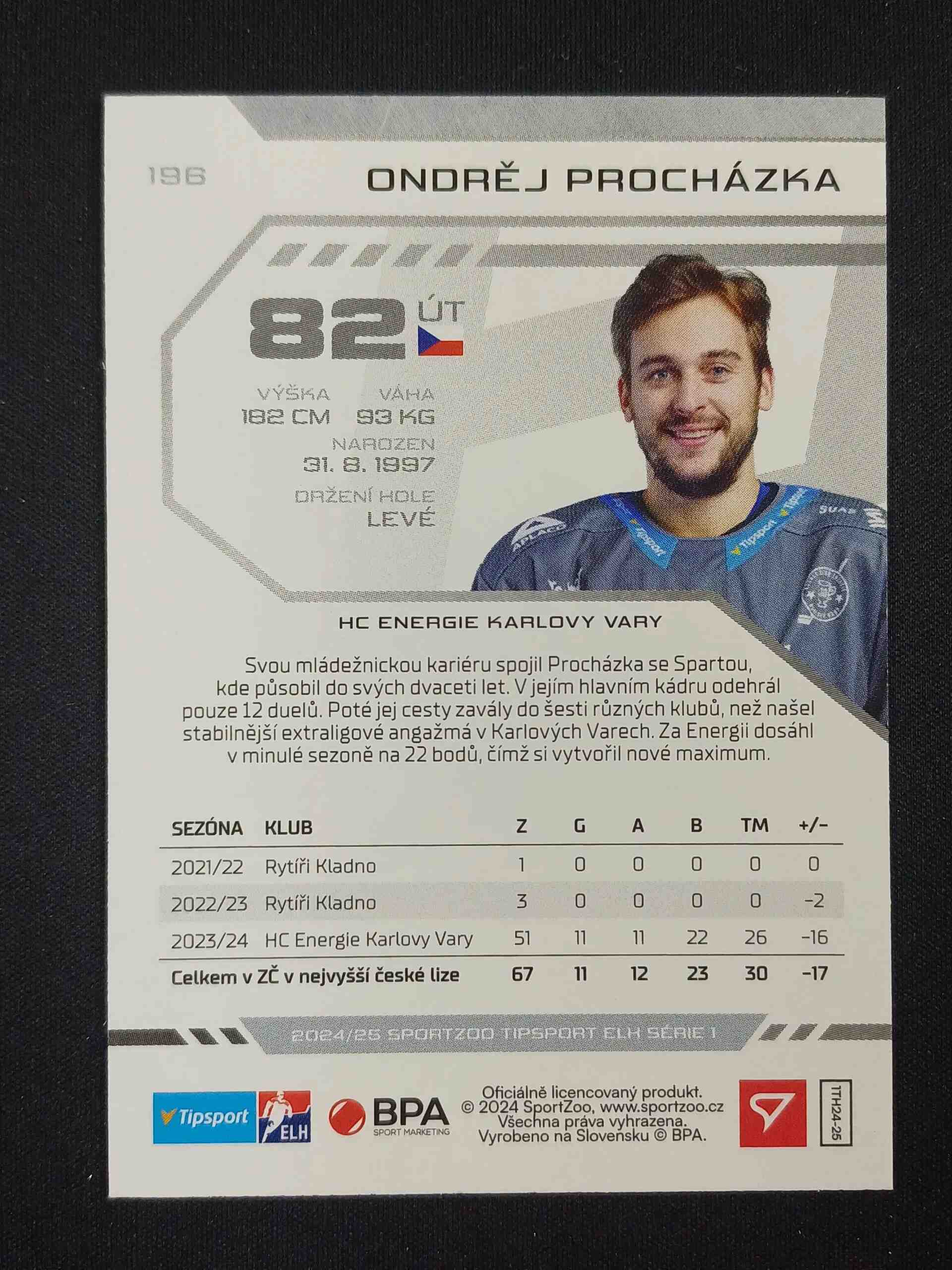 Sběratelská karta 2024/2025 Sportzoo Serie 1 Red Sparks 196 Ondřej Procházka Paralel