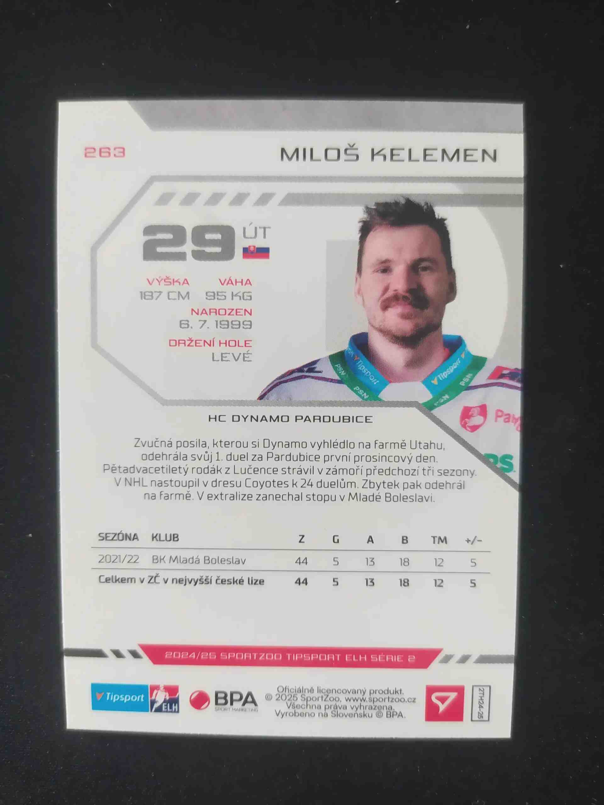 Sběratelská karta 2024/2025 Sportzoo Serie 2 Base 263 Miloš Kelemen
