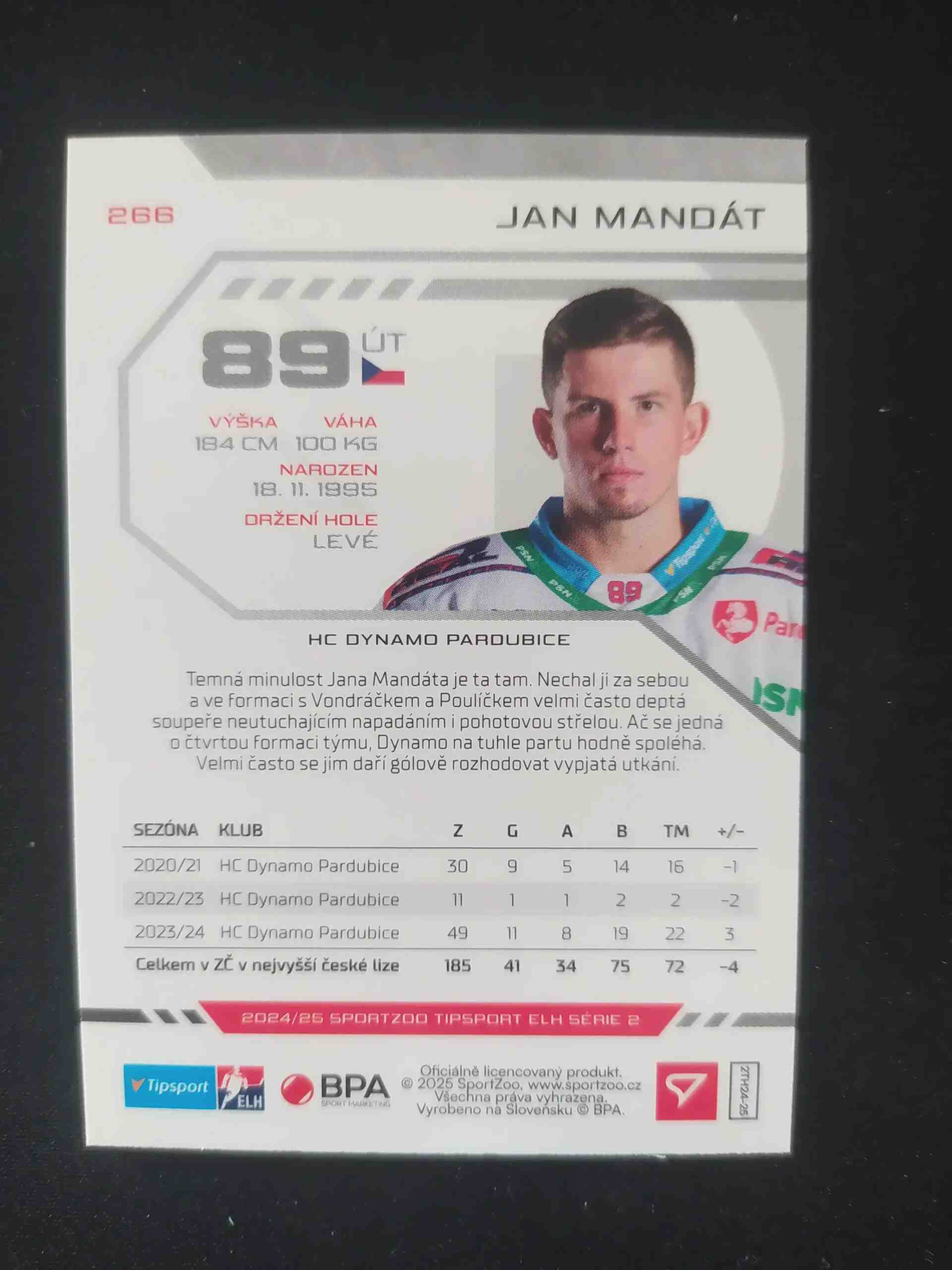 Sběratelská karta 2024/2025 Sportzoo Serie 2 Base 266 Jan Mandát