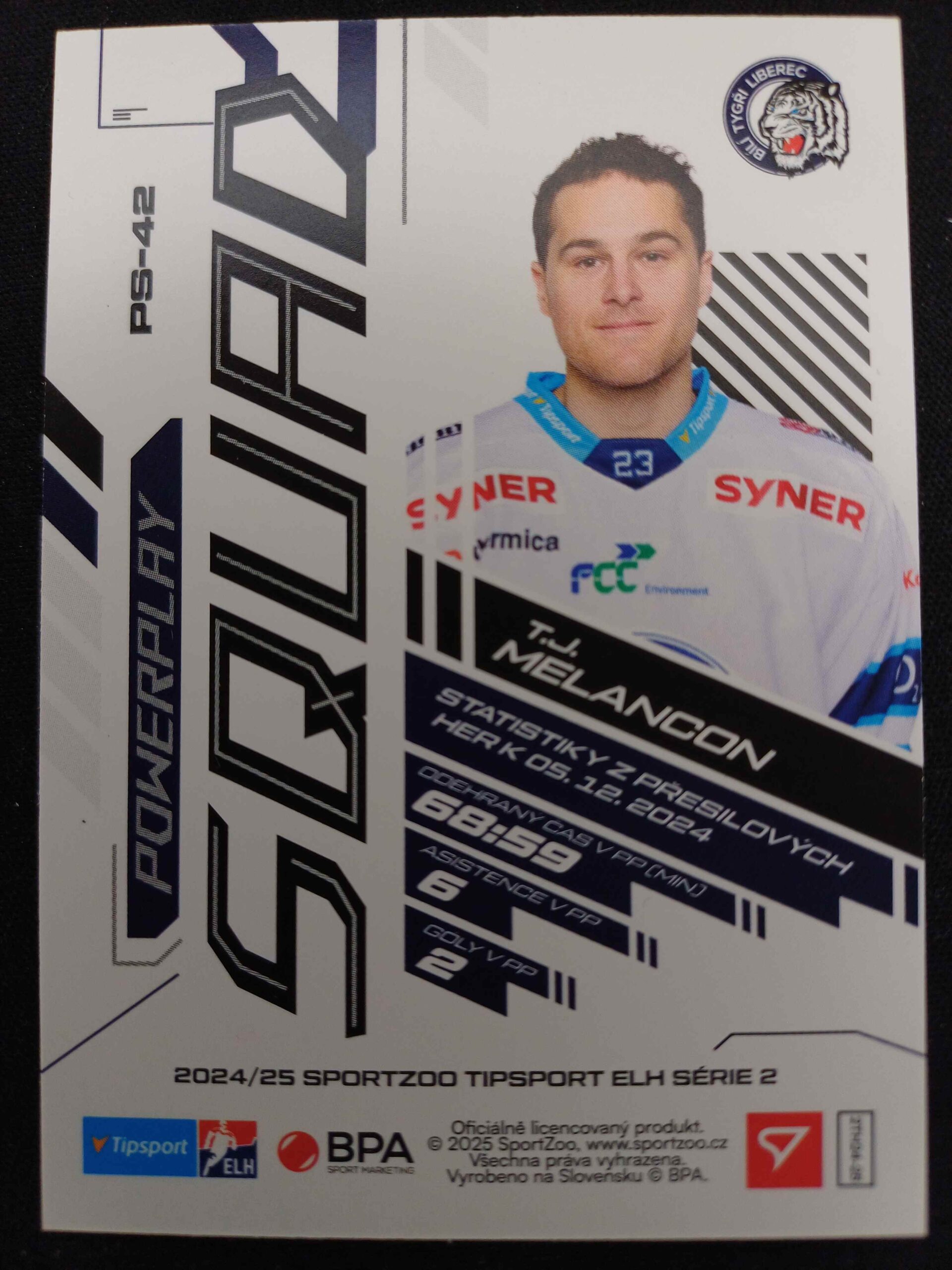 Sběratelská karta 2024/2025 Sportzoo Serie 2 Powerplay Squad Golden Fireworks PS-42 T.J. Melancon Inzert 44/45