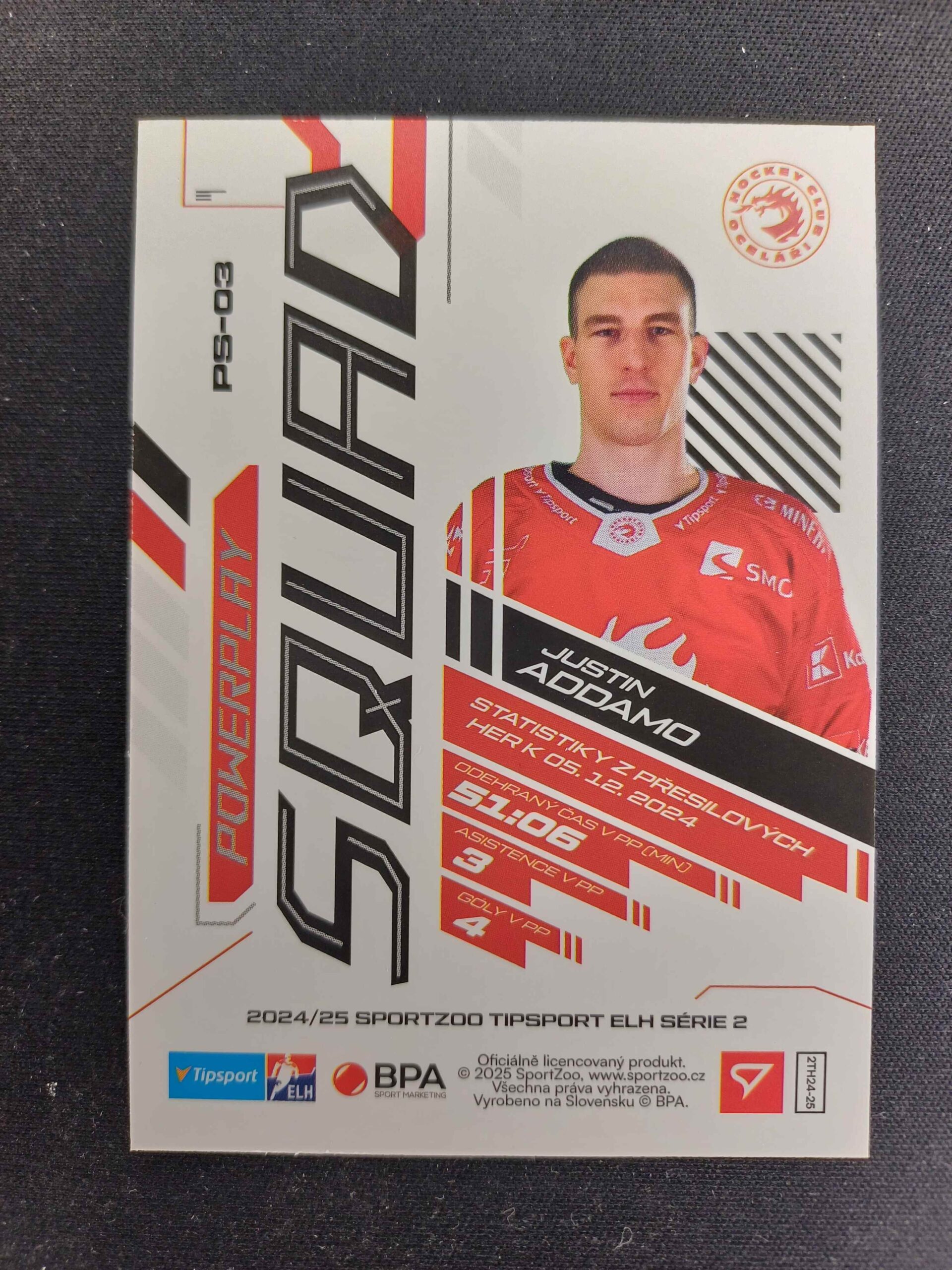 Sběratelská karta 2024/2025 Sportzoo Serie 2 PowerPlay Squad PS-03 Justin Addamo Inzert
