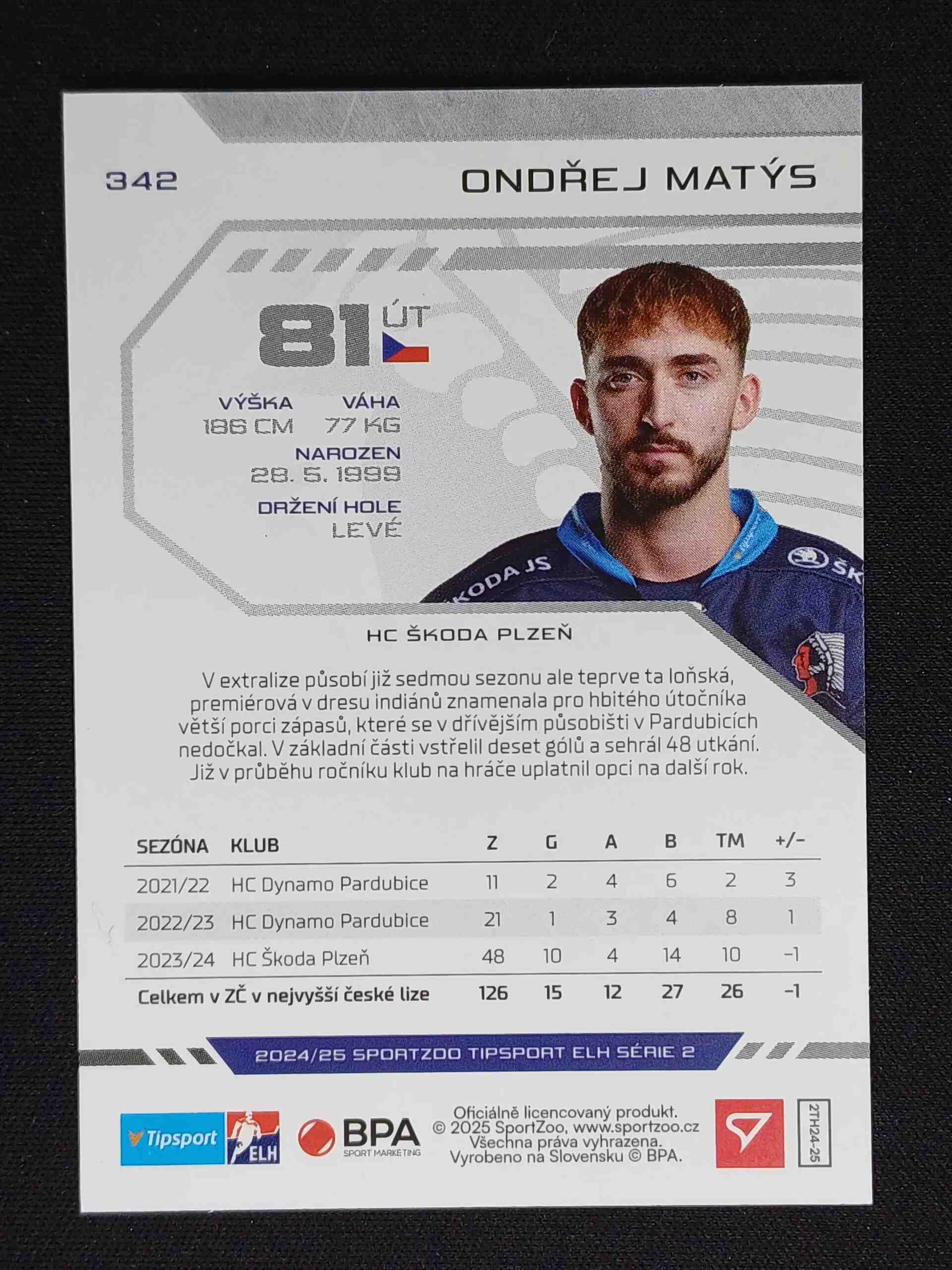 2024/2025 Sportzoo Serie 2 Puck Marks 342 Ondřej Matýs Paralel