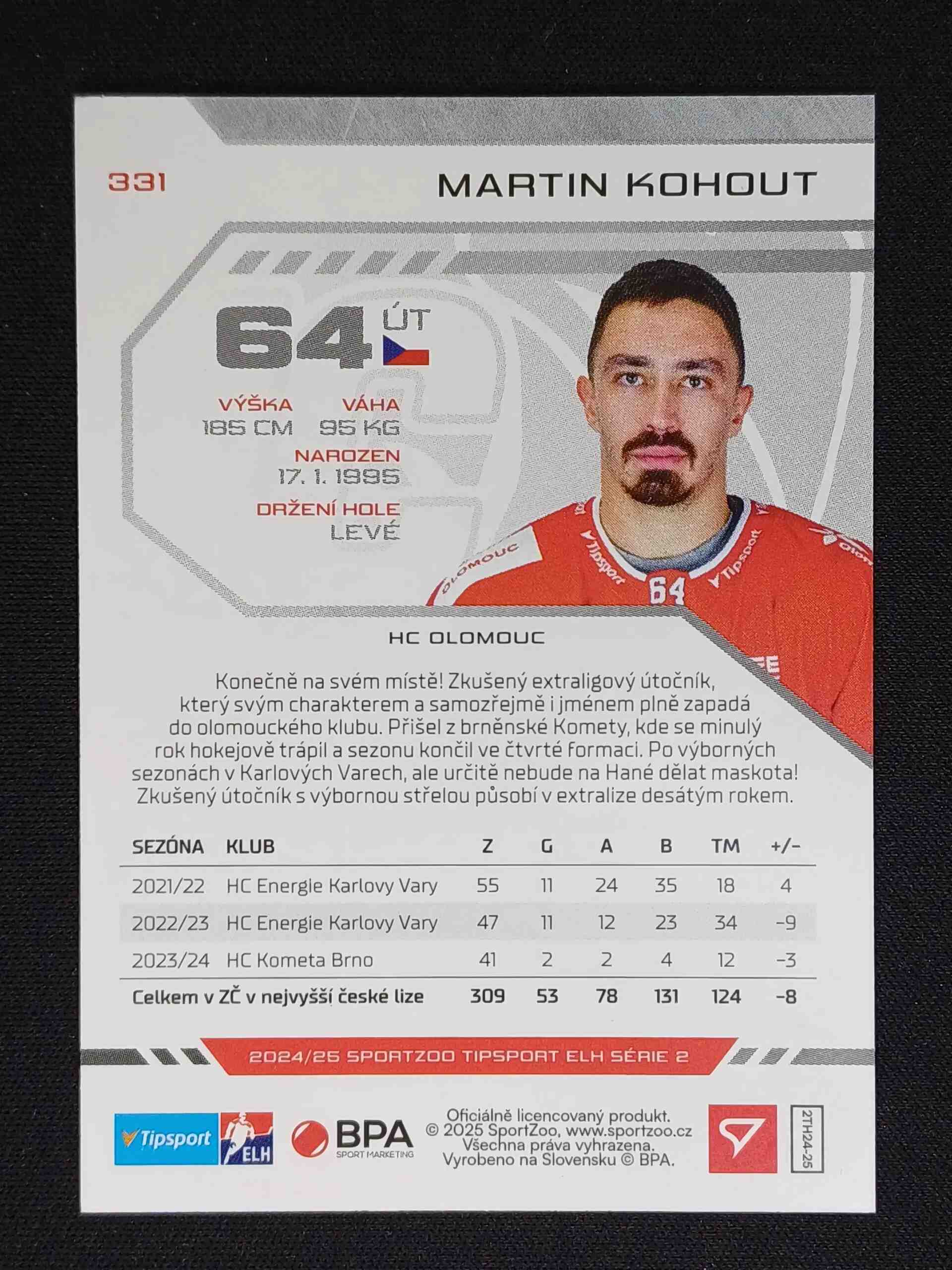Sběratelská karta 2024/2025 Sportzoo Serie 2 Purple Iceberg 331 Martin Kohout Paralel 52/60