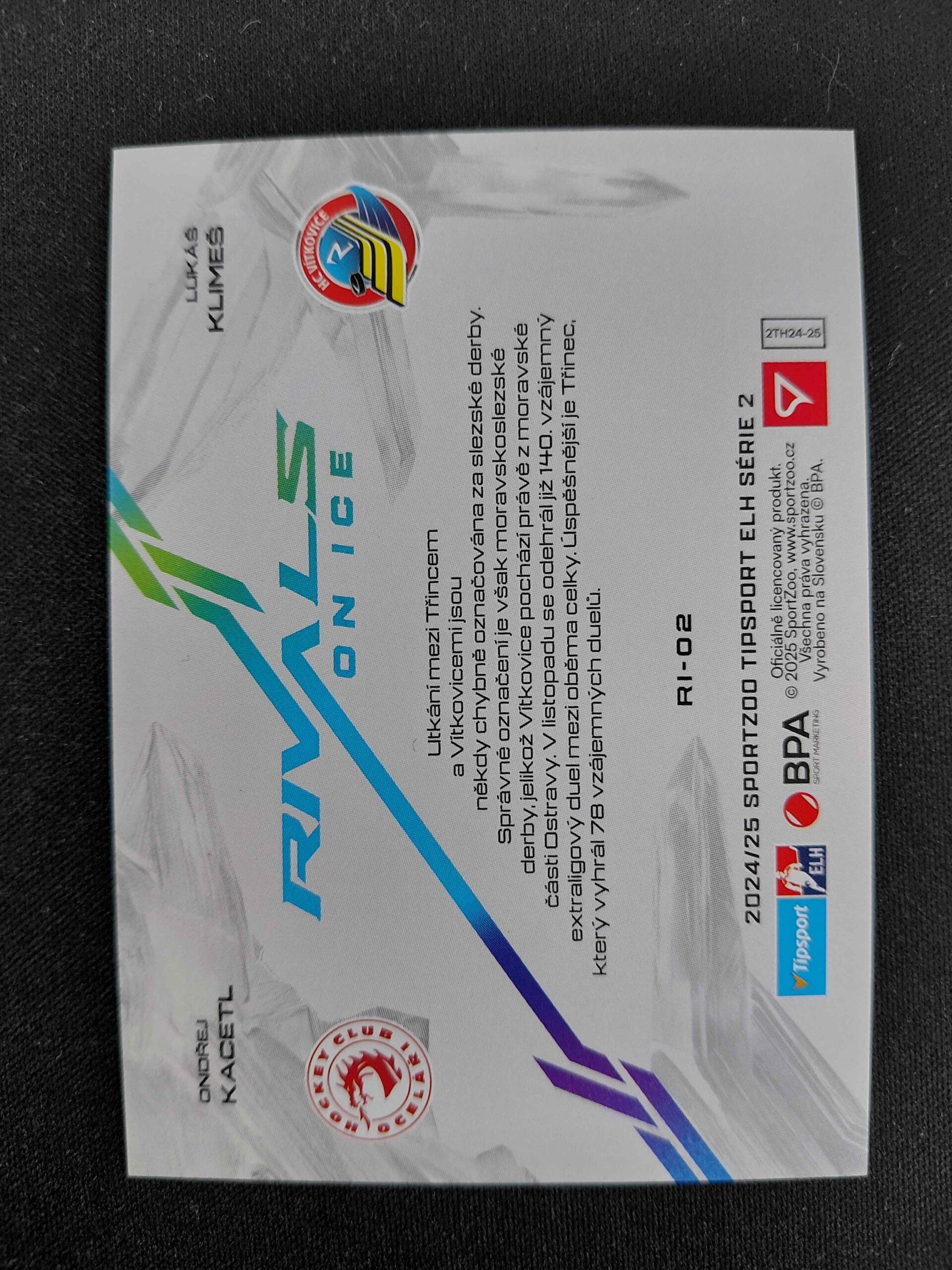 2024/2025 Sportzoo Serie 2 Rivals on Ice Blue Glacier RI-02 Lukáš Klimeš, Ondřej Kacetl Inzert 32/45