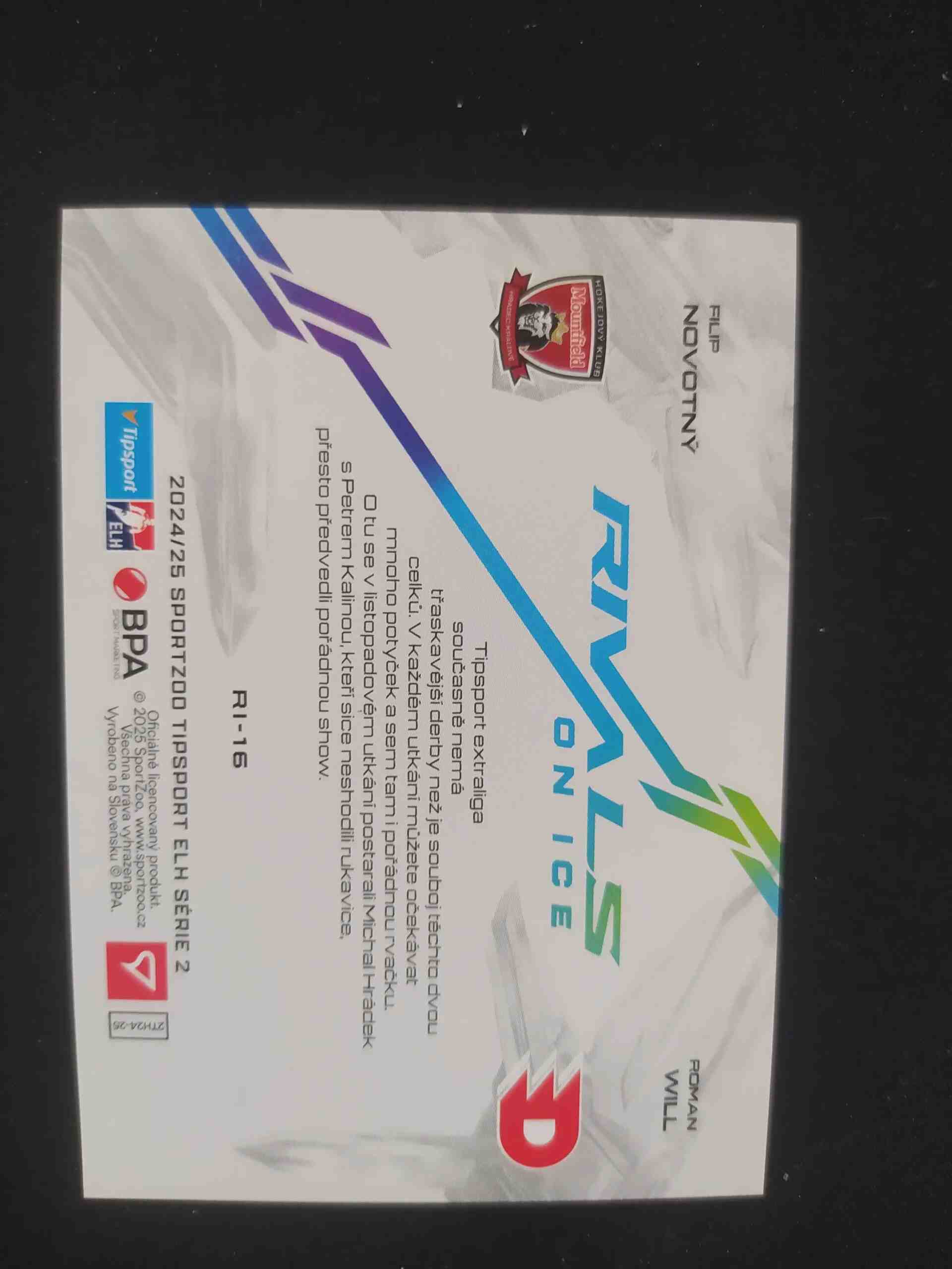 Sběratelská karta 2024/2025 Sportzoo Serie 2 Rivals on Ice RI-16 Filip Novotný | Roman Will Inzert