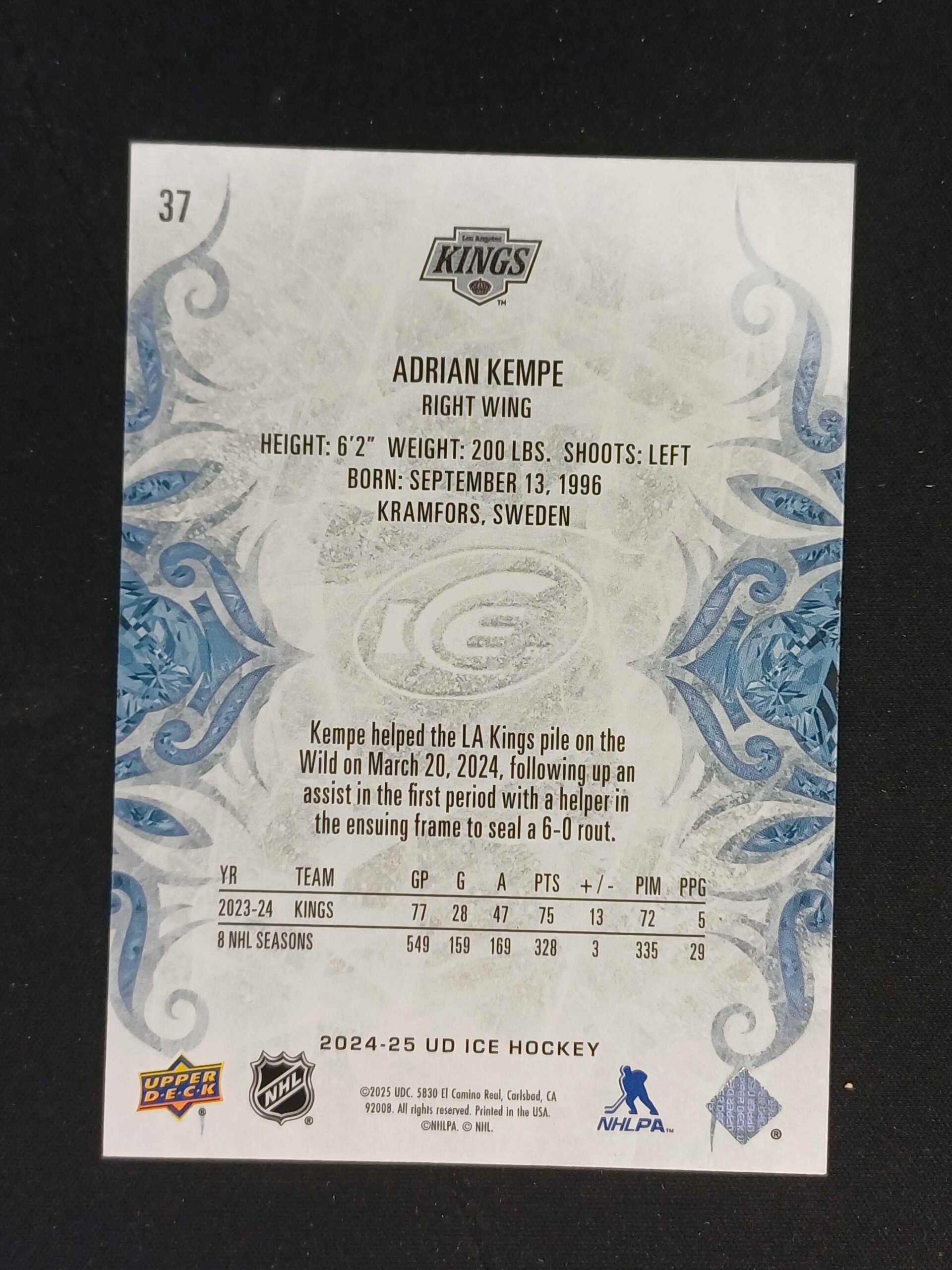 Sběratelská karta 2024/2025 Upper Deck ICE Base 37 Adrian Kempe