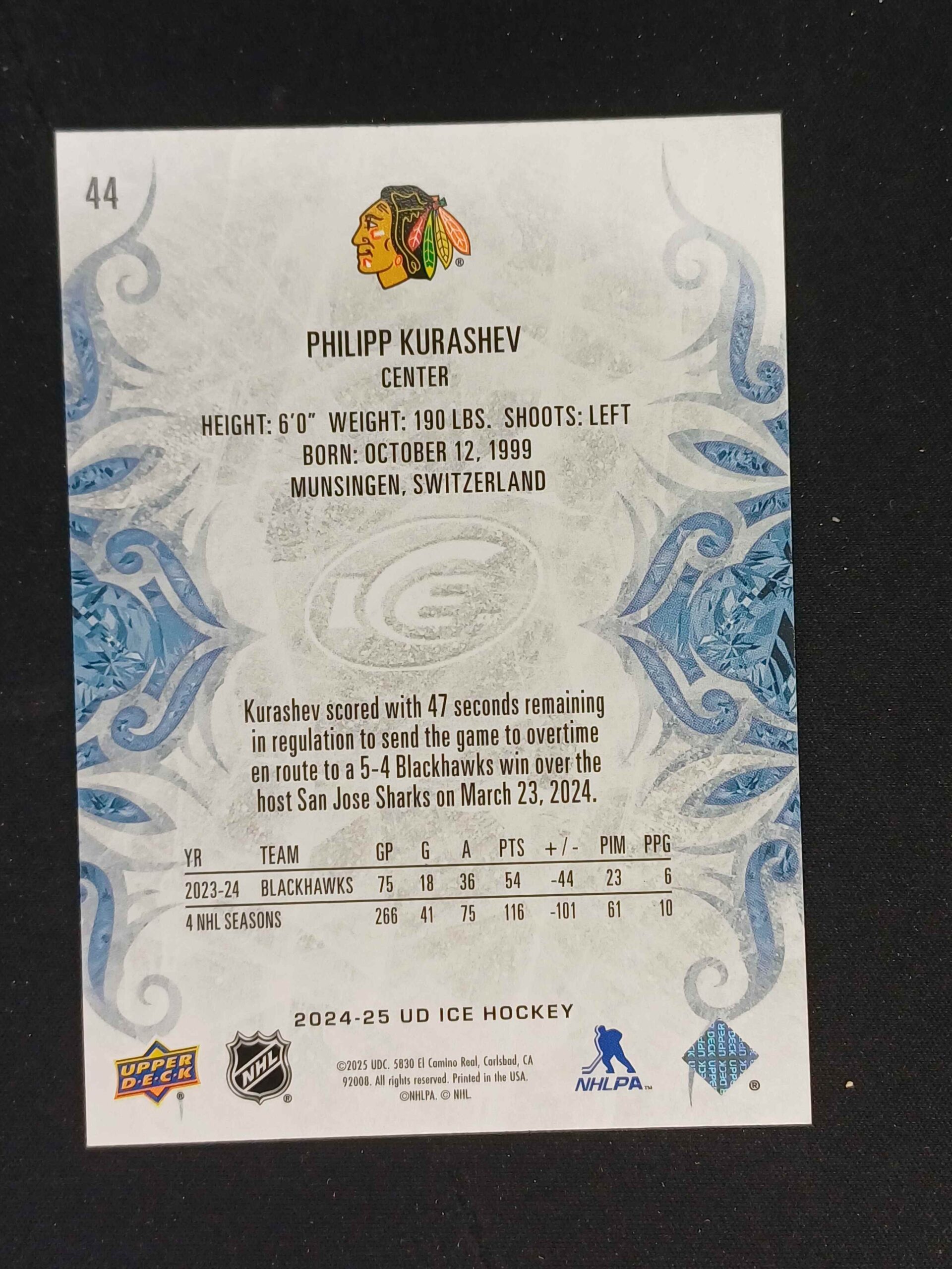 Sběratelská karta 2024/2025 Upper Deck ICE Base 44 Philipp Kurashev