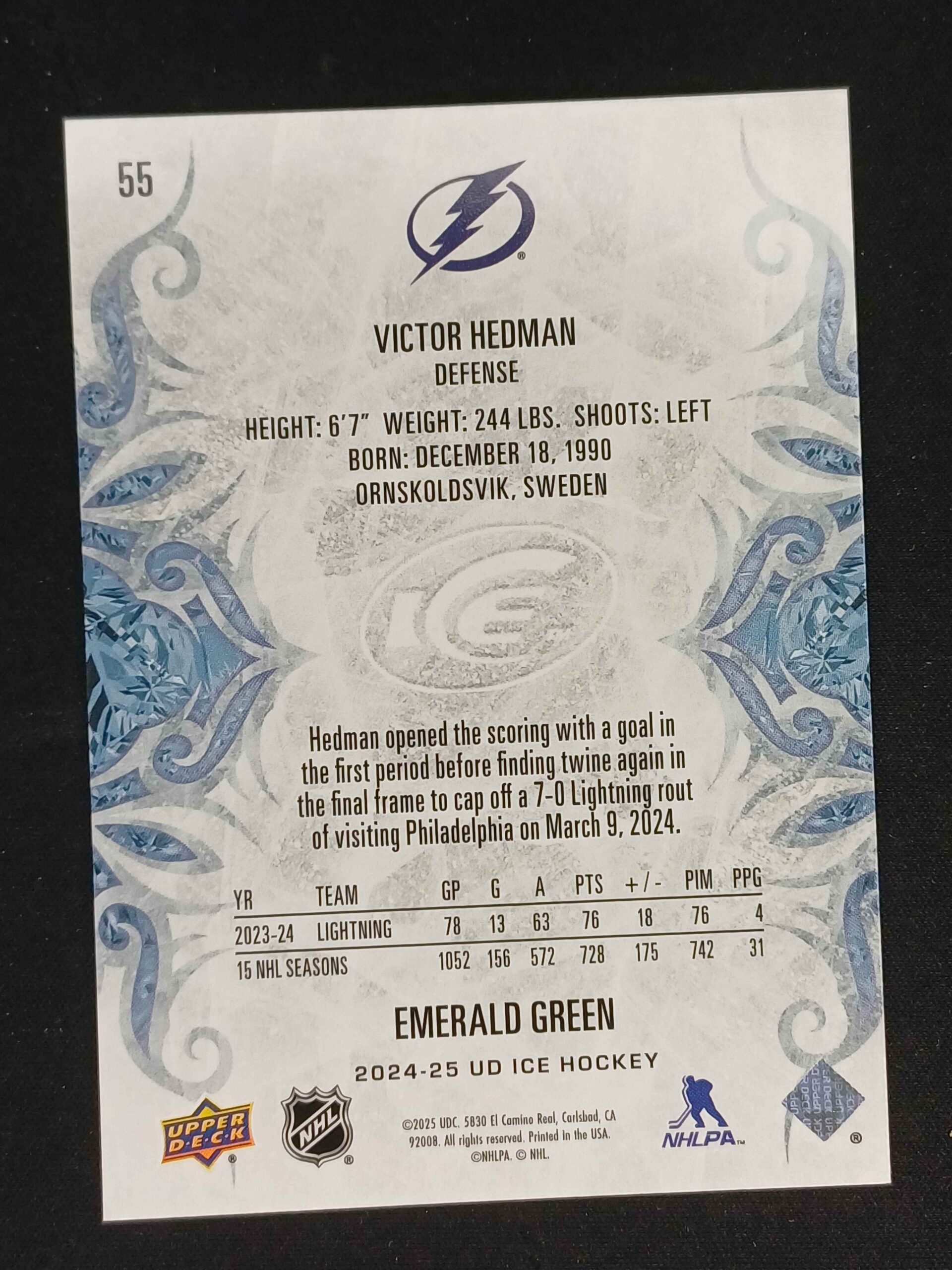 Sběratelská karta 2024/2025 Upper Deck ICE Emerald Green 55 Victor Hedman Paralel