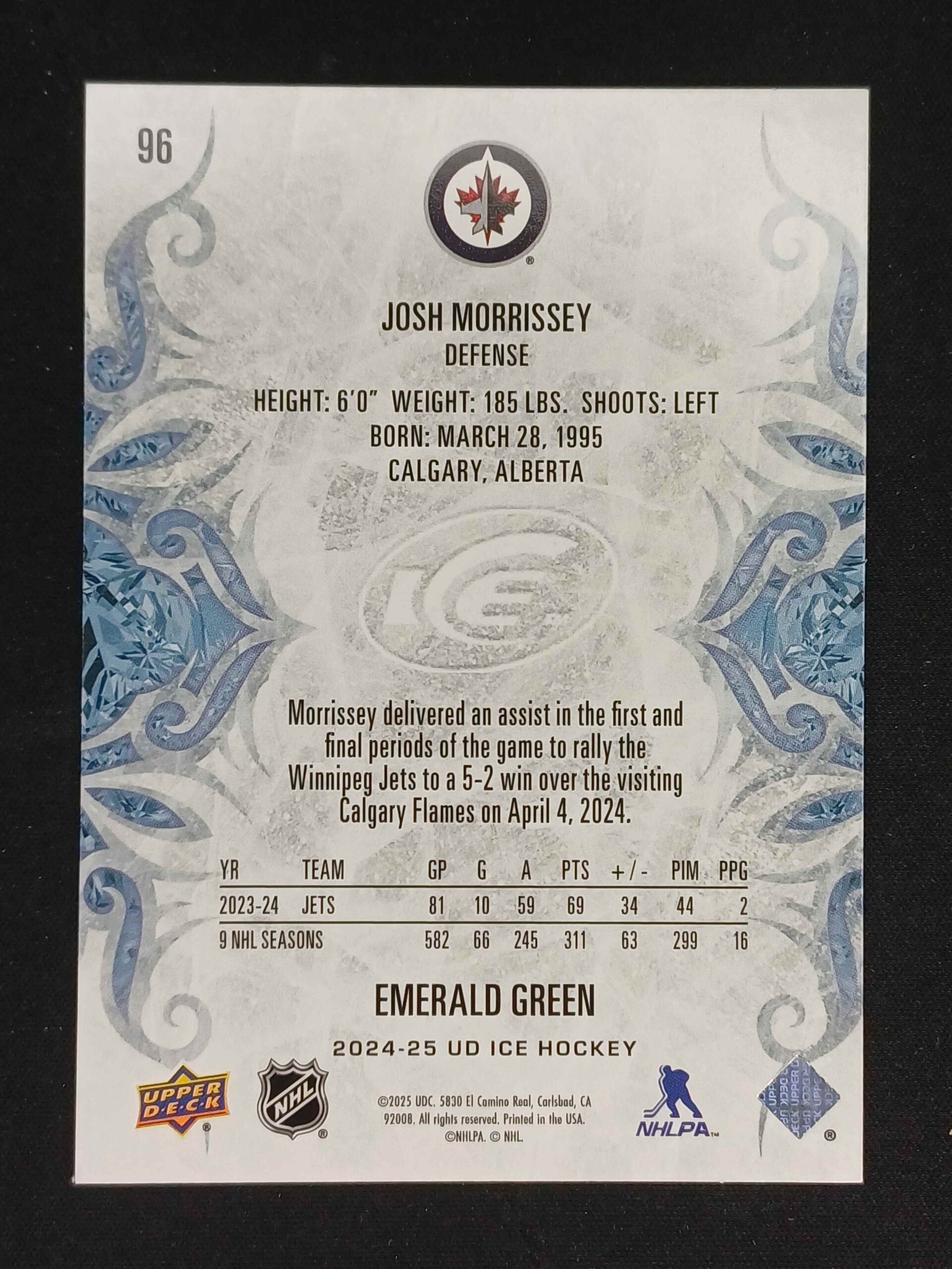 2024/2025 Upper Deck ICE Emerald Green 96 Josh Morrissey Paralel